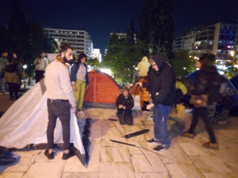 Κατόπιν, περίπου 50 πρόσφυγες πήγαν με σκηνές στην πλατεία Συντάγματος για να διαμαρτυρηθούν για το γεγονός ότι δεν έχουν που να μείνουν.