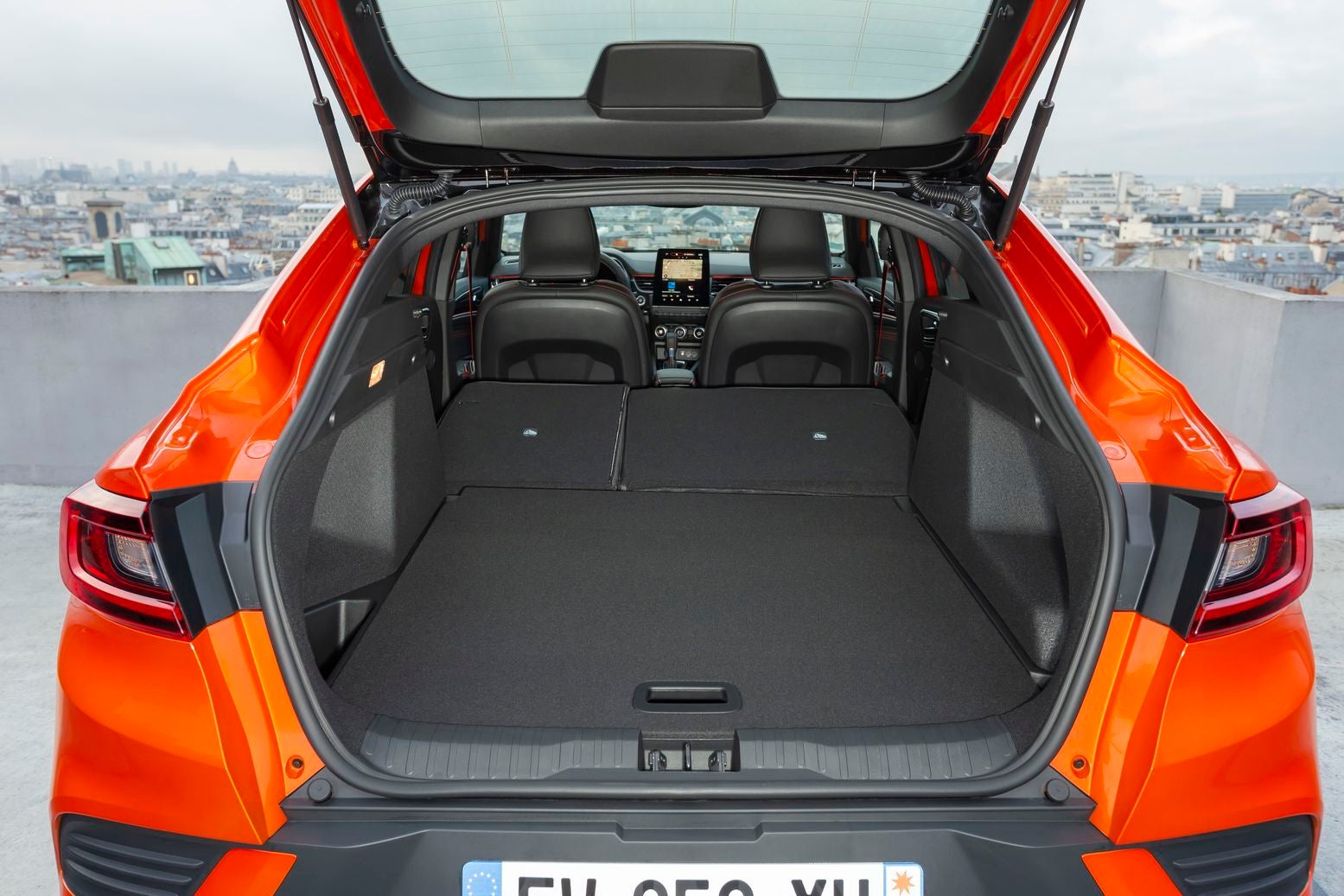 Με πληθώρα αποθηκευτικών χώρων για μικροαντικείμενα, το Arkana διαθέτει 513 λίτρα όγκου αποσκευών στο πορτ-μπαγκάζ (80 λίτρα για την έκδοση E-TECH Hybrid με κιτ επισκευής ελαστικού), ιδιαίτερα μεγάλο νούμερο για coupe αυτοκίνητο, ενώ και τα πίσω καθίσματα αναδιπλώνονται διαιρούμενα 60:40.