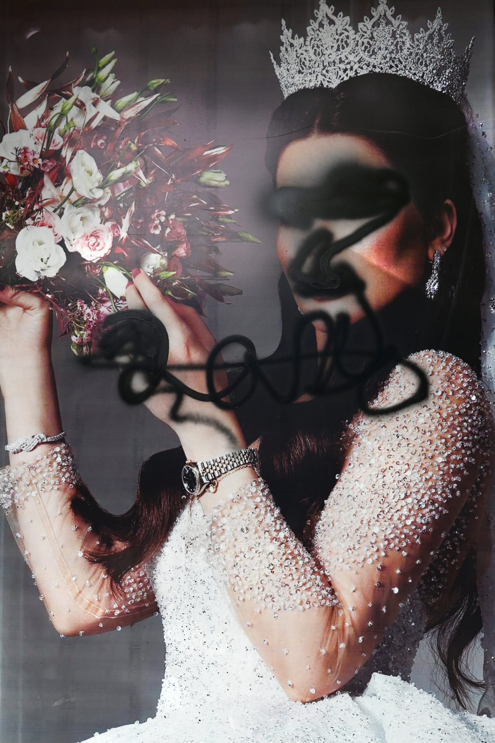 Χαρακτηριστικό δείγμα, ο βανδαλισμός των φωτογραφιών γυναικών στην βιτρίνα κέντρου ομορφιάς, σε γειτονιά της Καμπούλ.