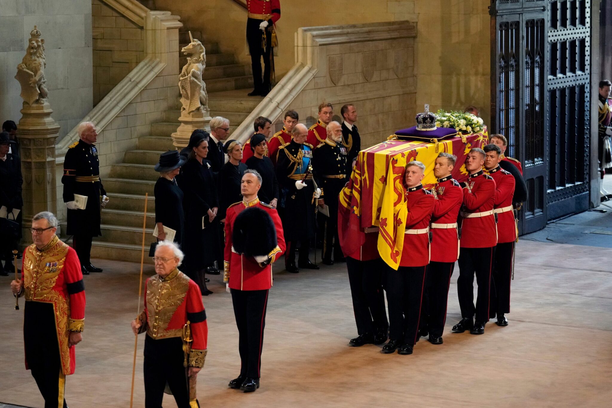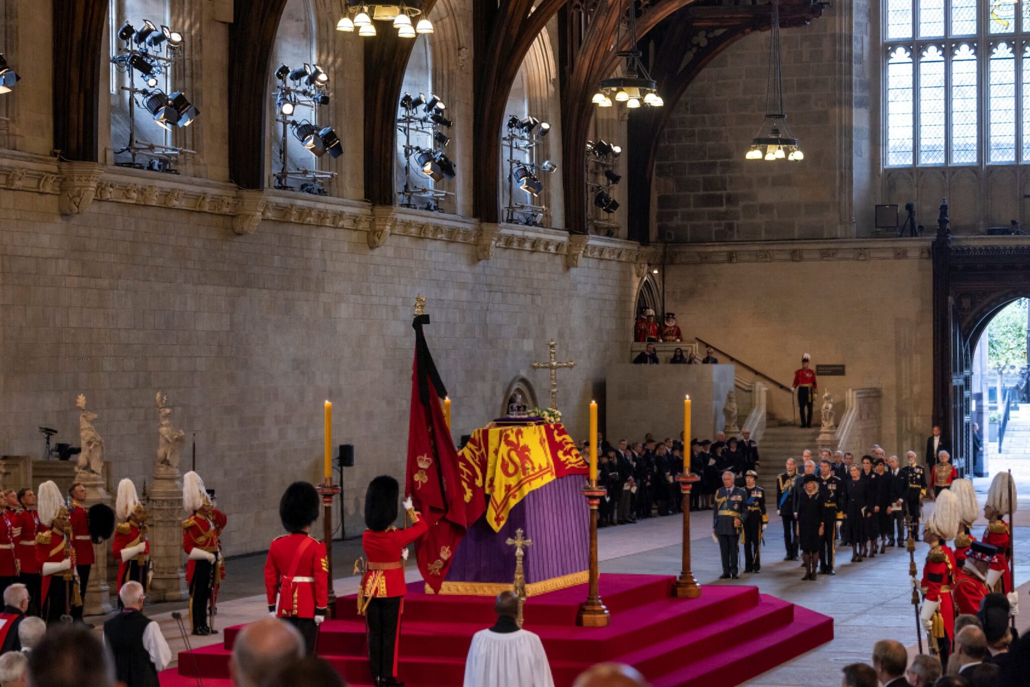 Το λαϊκό προσκύνημα στη σορό της βασίλισσας Ελισάβετ ξεκίνησε στην παλαιότερη αίθουσα του κοινοβουλίου, στο Γουεστμίνστερ Χολ, το οποίο θα παραμείνει ανοιχτή για το κοινό μέχρι την κηδεία της, την Δευτέρα στο Αββαείο του Γουέστμινστερ.