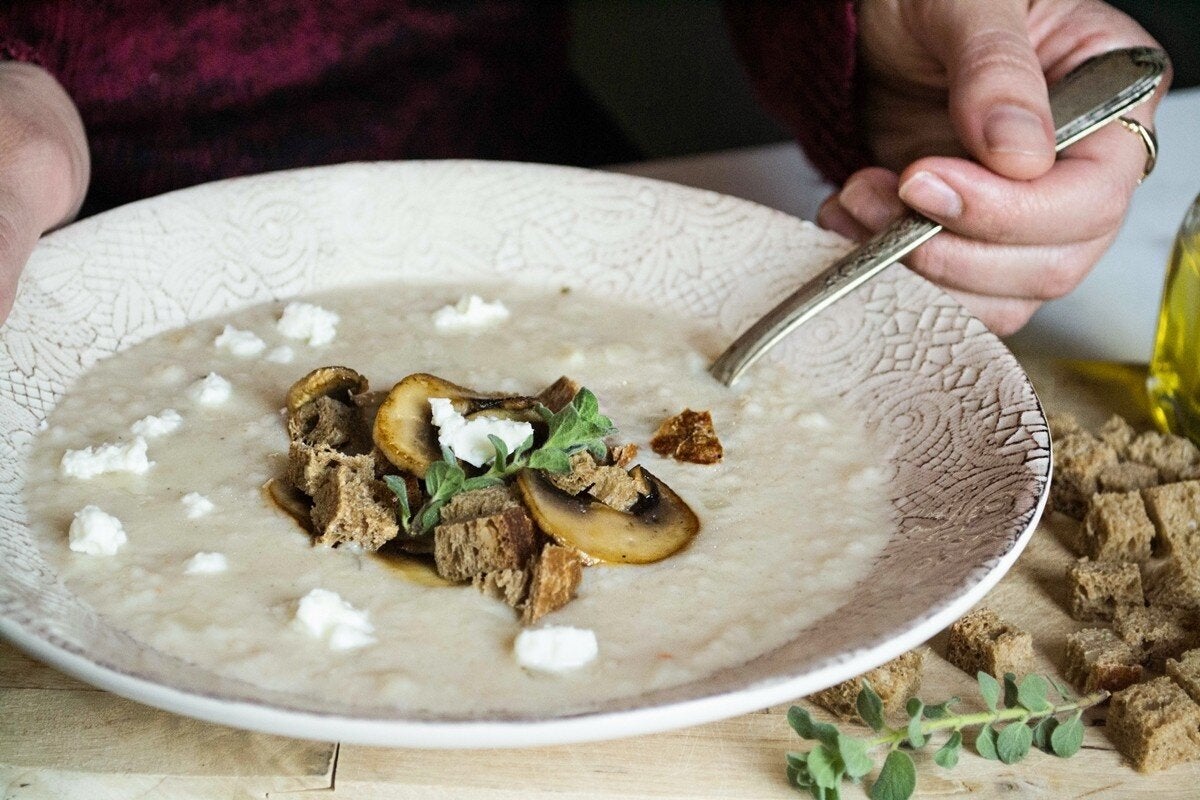 Τραχανάς Σούπα με Γιαούρτι και Μανιτάρια