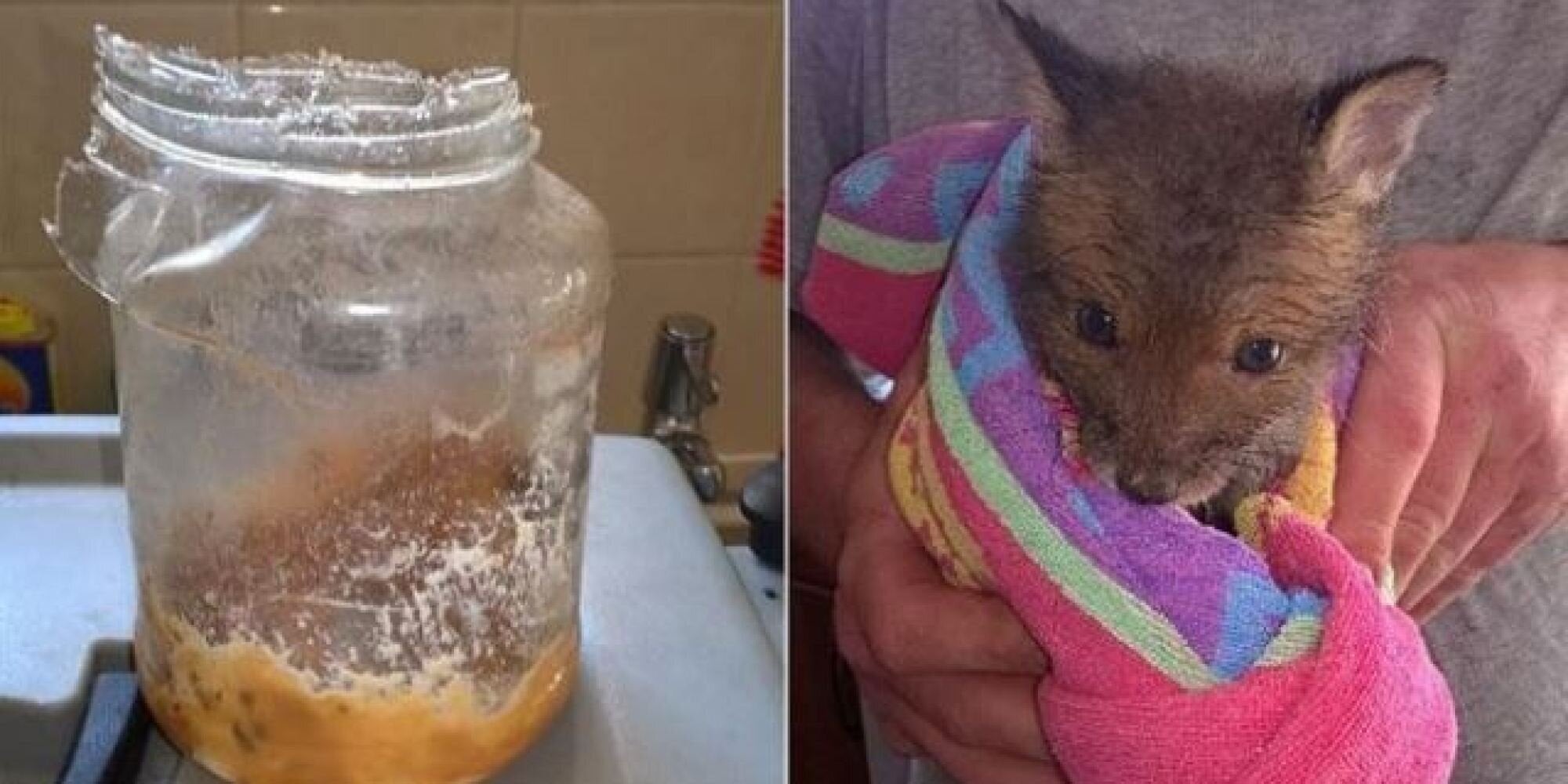 Οι αλεπούδες είναι περιβόητες για την πονηριά τους και τον τρόπο που καταφέρνουν να κλέβουν αβγά και τρόφιμα από τους αγρότες, χωρίς να τις καταλαβαίνει κανείς. Το αλεπουδάκι όμως της φωτογραφίας φαίνεται ότι έχει ακόμα πολύ δρόμο μπροστά του μέχρι να μοιάσει στα ενήλικα μέλη της οικογένειάς του. Και αυτό γιατί, όχι μόνο πιάστηκε επί το έργον, αλλά επειδή παραλίγο να τραυματιστεί σοβαρά όταν πήγε να δοκιμάσει λίγο φυστικοβούτυρο από ένα δοχείο που βρήκε ανοιχτό στον δρόμο του.