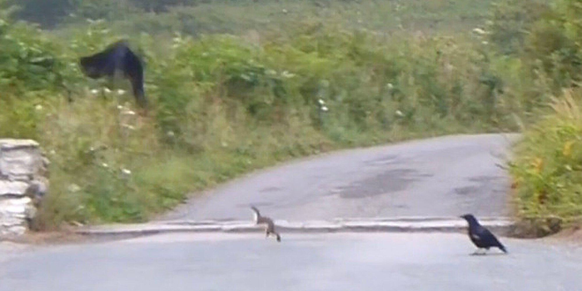 Η μάχη έδειχνε άνιση.Το μικρό κουνάβι θα γινόταν κολατσίο για τα τρία κοράκια που έτυχε να το δουν να χοροπηδά μέσα στους αγρούς του Wembury Marine Centre στο νότιο Devon.