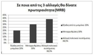 Οι έρευνες της MRB δείχνουν πως τους Έλληνες τους απασχολούν 3 κυρίως προβλήματα: Η ανεργία, οι φόροι και η ηθική απαξίωση του πολιτικού συστήματος. Και προσπαθούν να επιλέξουν αυτόν που θα προσφέρει την πιο πειστική λύση.