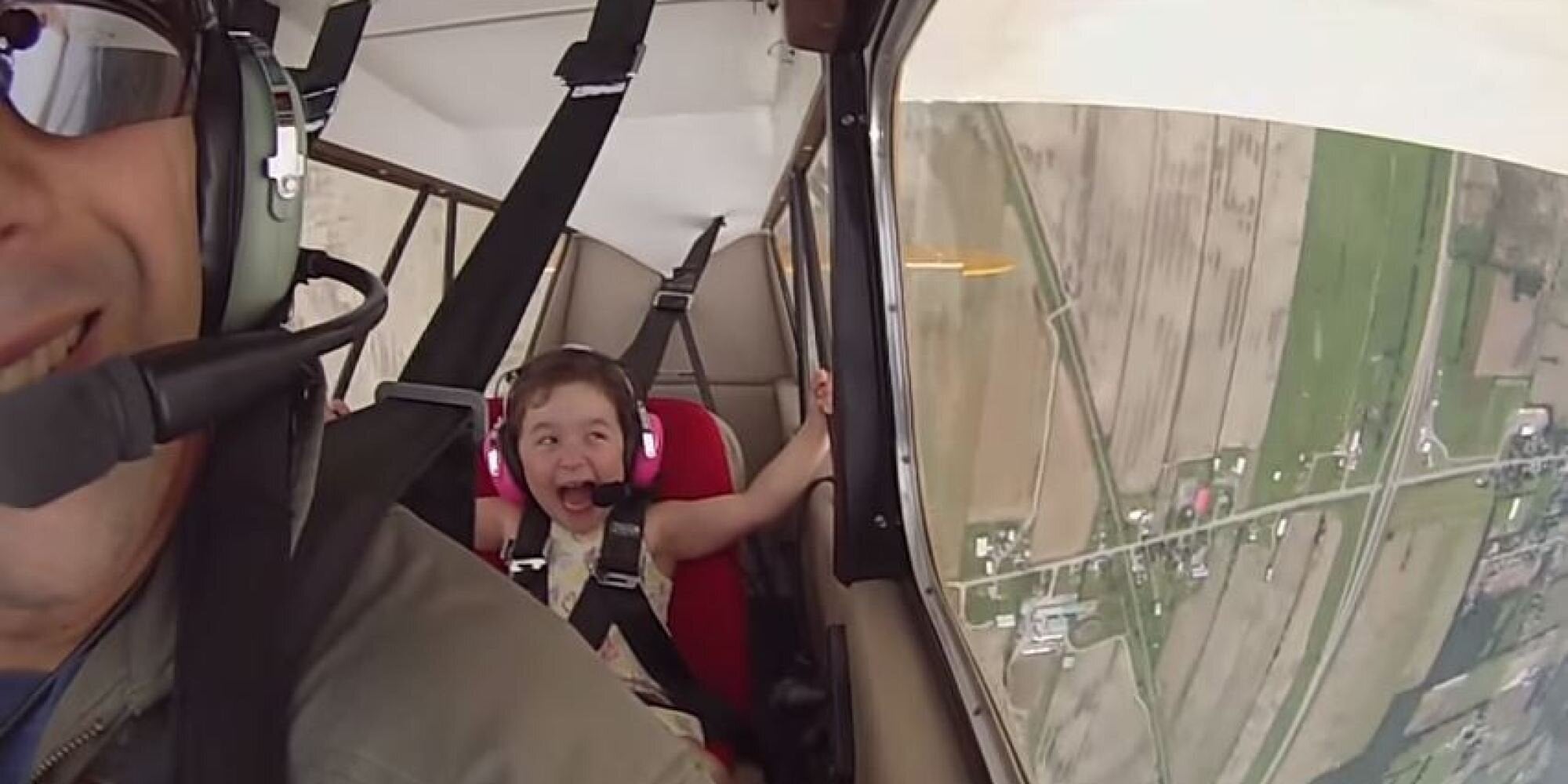 Ο πατέρας της κοπέλας, που δημοσίευσε το βίντεο στο Youtube, σημειώνει πως η ίδια η μικρή ήταν εκείνη που του ζήτησε να πετάξει μαζί του, παρακαλώντας τον μάλιστα να κάνει ορισμένα “κόλπα” και “ακροβατικά” στον αέρα για αυτήν.