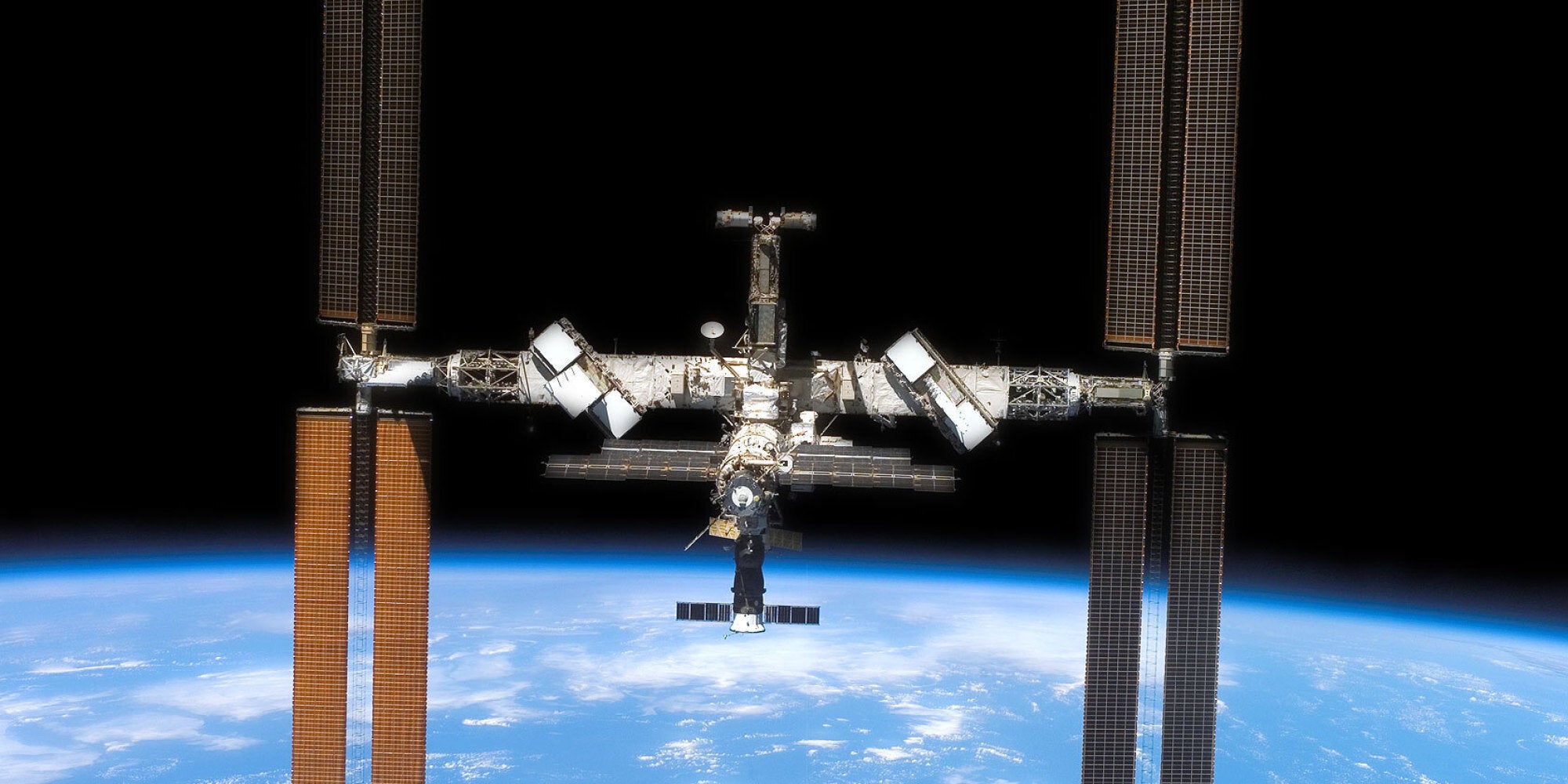 www.nasa.gov/multimedia/imagegallery/image_feature_852.html” data-caption=”Backdropped by the blackness of space and Earth’s horizon, the International Space Station and Space Shuttle Atlantis move farther apart at the end of STS-117’s mission, during which the shuttle and station crews concluded about eight days of cooperative work. Undocking of the two spacecraft occurred at 10:42 a.m. EDT on June 19, 2007. STS-117 pilot Lee Archambault was at the controls for the departure and fly-around, which gave Atlantis’ crew a look at the station’s newly expanded configuration.Source: NASA www.nasa.gov/multimedia/imagegallery/image_feature_852.html” data-credit=”Gray Lensman QX Flickr”>