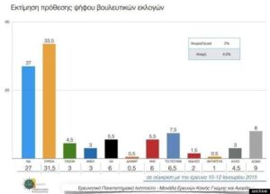 Στην πρόθεση ψήφου, ο ΣΥΡΙΖΑ, συγκεντρώνει το 33,5%