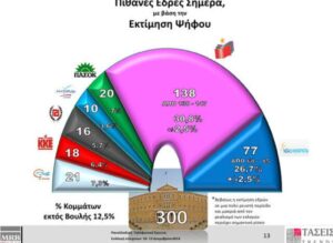 Δείτε στον πίνακα που ακολουθεί πως διαμορφώνονται οι πιθανές έδρες σήμερα με βάση την εκτίμηση ψήφου.