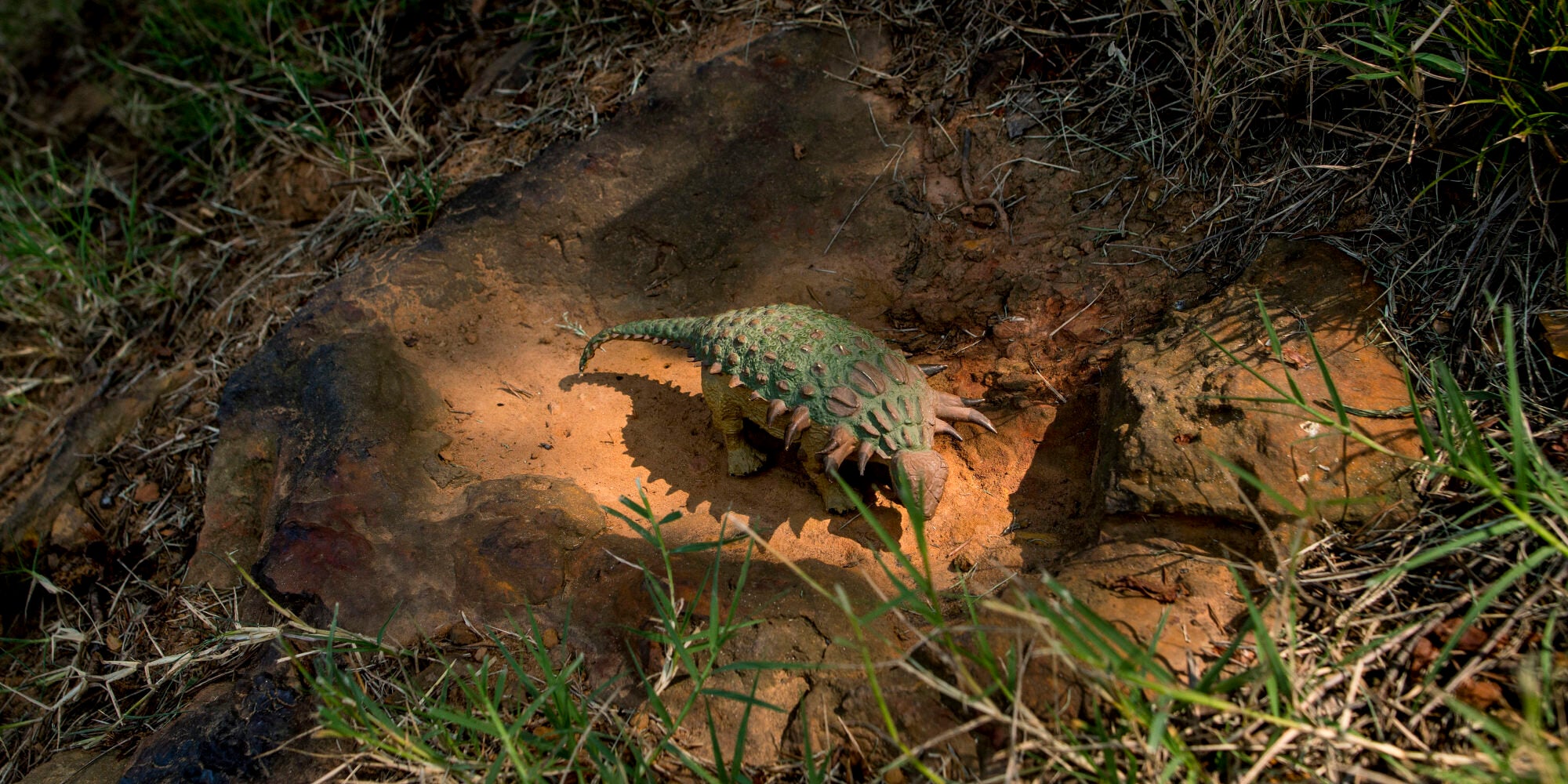 Όμως αυτό το απολίθωμα ηλικίας 110 εκατομμυρίων ετών, που παρουσιάστηκε σήμερα στο μουσείο παλαιοντολογίας του Καναδά, το Royal Tyrrell, κανείς δεν μπορεί να το μπερδέψει με πέτρα. Ανήκει σε έναν νοθόσαυρο ( nodosaur ).
