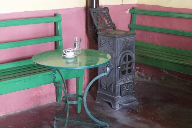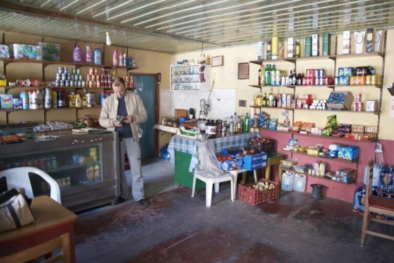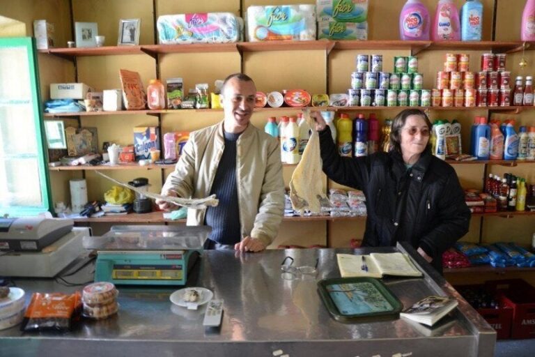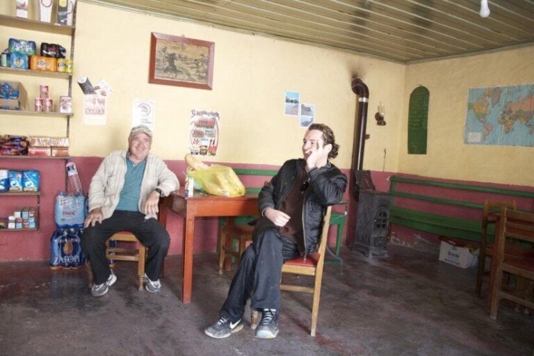 Σ’ ένα μακρόστενο χαμηλό κεραμοσκεπές κτίσμα με τοίχους στα χρώματα της ώχρας και πράσινα παραθύρια με λευκά πλαίσια, πάνω στη δημοσιά και απέναντι από ένα μικρό πλάτωμα, βρίσκεται εδώ και έναν αιώνα περίπου το καφενείο της οικογένειας Μουζακίτη. Την ίδια πολυχρωμία -ενισχυμένη με ένα ροζ στην κάτω πλευρά των τοίχων-συνάντησα και στο εσωτερικό του μαγαζιού. Μεταλλικά πράσινα τραπεζάκια, καταπληκτικής λιτότητας ξύλινοι πάγκοι, μια παλιά ξυλόσομπα, ραφαρίες με τα προϊόντα πρώτης ανάγκης και παλιές φωτογραφίες στον τοίχο ήταν το σκηνικό του εσωτερικού χώρου. Η τρίτη γενιά Μουζακίτηδων, ο Σπύρος, γνωστός ως «Φόντας», ένα νέο παληκάρι μας μύησε στην ιστορία του καφενέ: