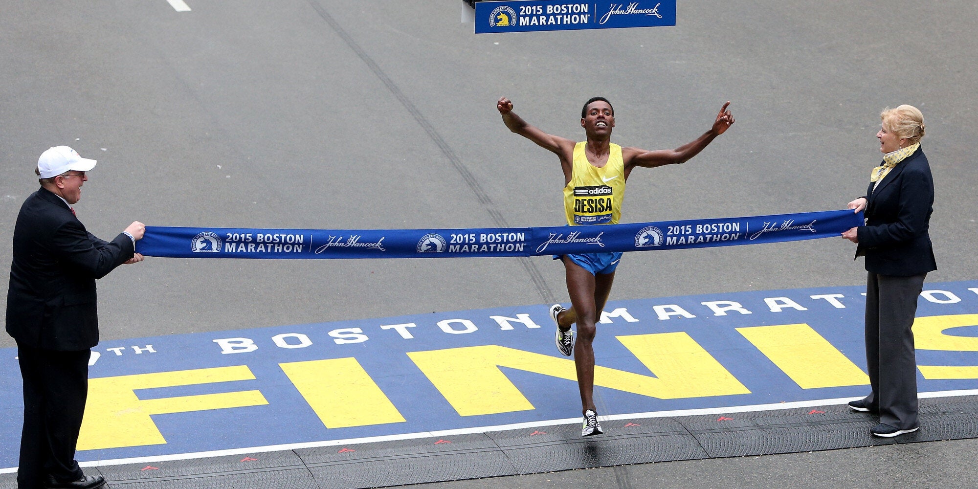 Νικητής στον αγώνα των ανδρών ήταν φέτος ο αιθίοπας Λελίσα Ντεσίσα με 2:09.17, που ήταν και ο νικητής του 2013 -δύο ώρες αφού τερμάτισε τότε, όταν ο μεγαλύτερος όγκος των αγωνιζομένων είχε αρχίσει να τερματίζει, έσκασαν οι βόμβες.