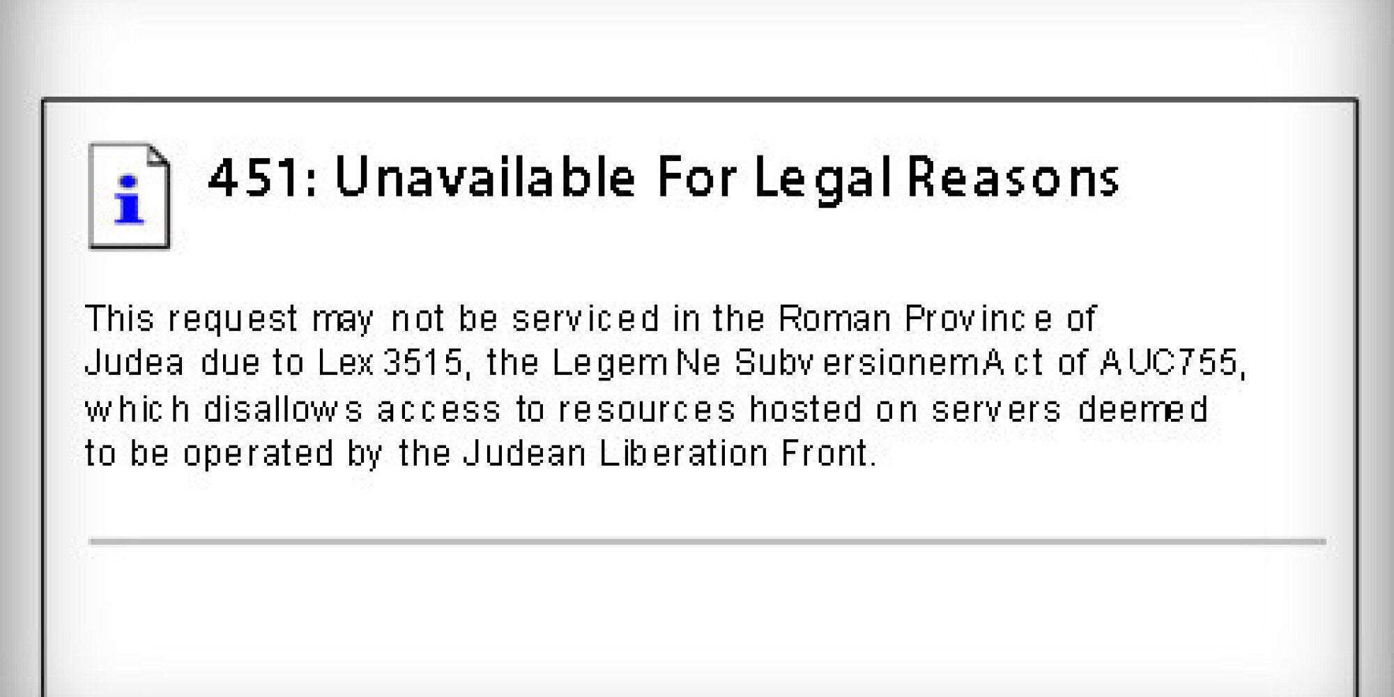 Με έναν ομολογουμένως ευρηματικό τρόπο, το TheNextWeb παρουσίασε ένα παράδειγμα για το πως θα εμφανίζεται ένα σφάλμα 451 στο χρήστη: