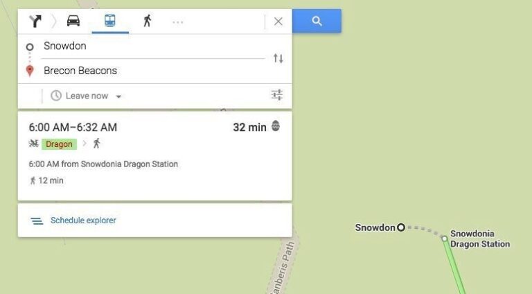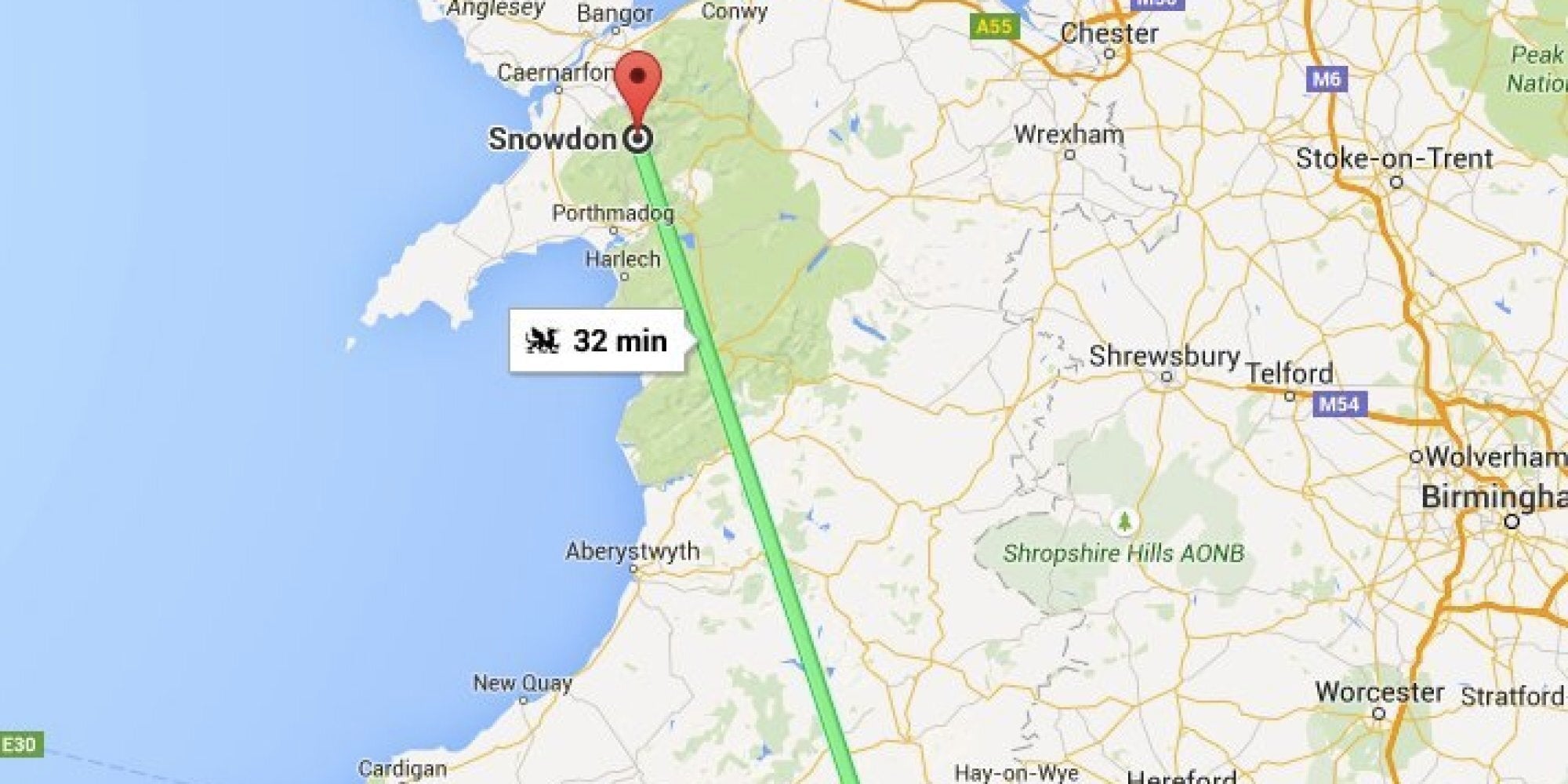 Χαρακτηριστικό παράδειγμα είναι το ταξίδι από το Σνόουντον, το υψηλότερο βουνό της Ουαλίας, στα όρη Μπρέκον Μπίκονς. Σύμφωνα με τη Google, θα χρειάζονταν είτε τρεισήμισι ώρες με το αυτοκίνητο, είτε 32 λεπτά με τον δράκο.