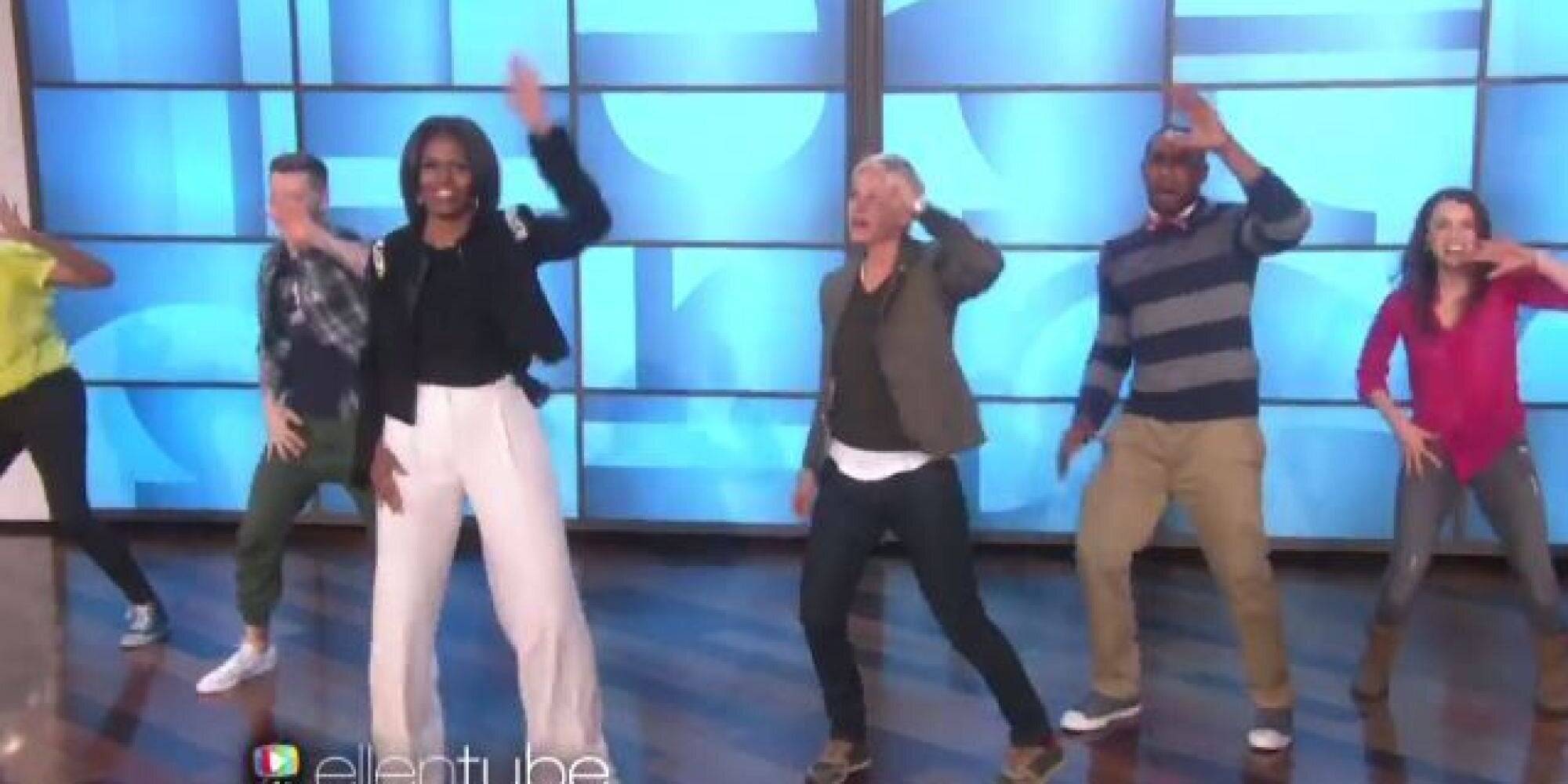Κατά τη διάρκεια της συζήτησης, η Ντε Τζένερις προκάλεσε την 51χρονη Μισέλ Ομπάμα να χορέψει και αυτή όχι μόνο δεν αρνήθηκε αλλά φαίνεται να το ευχαριστήθηκε και πάρα πολύ