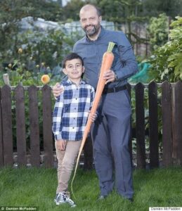 Ο 53χρονος κηπουρός καλλιεργεί σοδειά για την ποιότητα και τη γεύση, αλλά η φετινή συγκομιδή περιείχε κάτι σπάνιο: ένα καρότο τόσο ψηλό όσο τον εξάχρονο εγγονό του, Oscar, σύμφωνα με την Daily Mail.