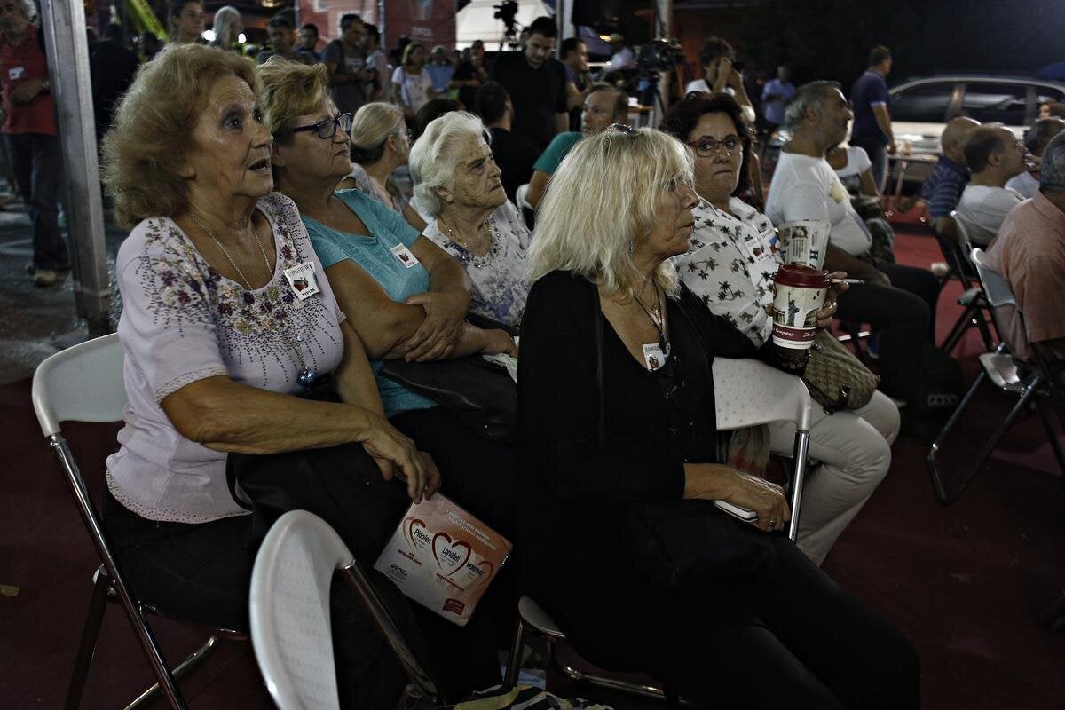 Οι φωτογραφίες από τα εκλογικά περίπτερα των δύο κομμάτων είναι χαρακτηριστικές και δείχνουν το κοντράστ συναισθημάτων μεταξύ των δύο πλευρών.