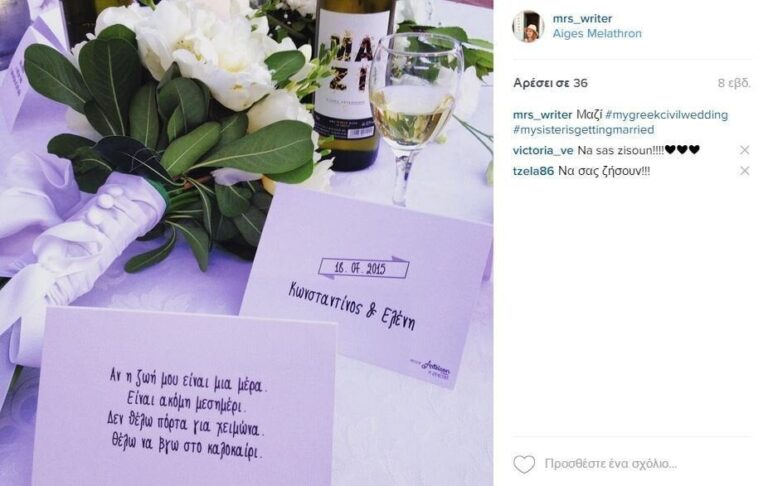 Τότε ήταν που άρχισα να συνειδητοποιώ ότι μέχρι και εκείνη τη στιγμή δεν είχαμε ποτέ μιλήσει για το τι σημαίνει «ιδανικός γάμος» για μας. Δεν ήμασταν ποτέ από εκείνα τα κοριτσάκια που τους ενθουσίαζε το όλο θέμα, δεν ονειρευόμασταν νυφικά-τούρτες και στολισμένες εκκλησίες με τούλι. Το μόνο που λέγαμε και οι δύο ήταν πόσο δεν μας αρέσουν όλα αυτά και πως όταν έρθει η στιγμή θα θέλαμε να το κάνουμε «αλλιώς».
