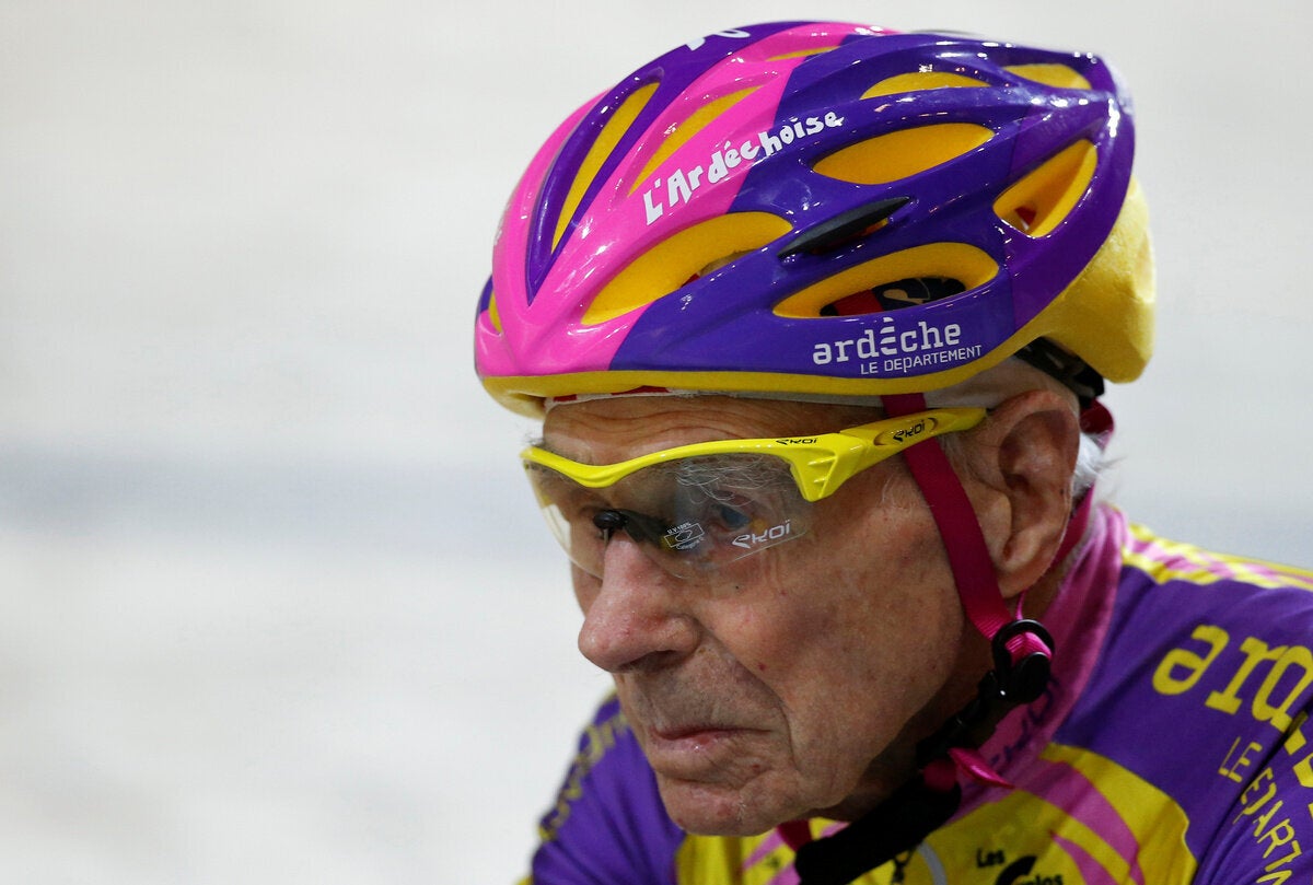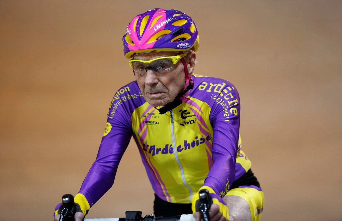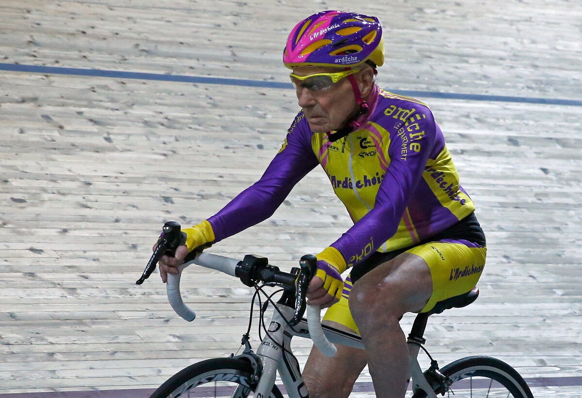 Την Τετάρτη απέδειξε ακόμη μία φορά ότι ο εν λόγω ισχυρισμός ήταν 100% ψευδής. Φορώντας την κίτρινη στολή του με της μοβ λεπτομέρειες, ο 105χρονος Γάλλος όχι μόνο έσπασε κάθε ρεκόρ αλλά δημιούργησε μία νέα κατηγορία για τους ανθρώπους άνω των 105 ετών, κάνοντας ποδήλατο με 22,547 χιλιόμετρα για μία ώρα.