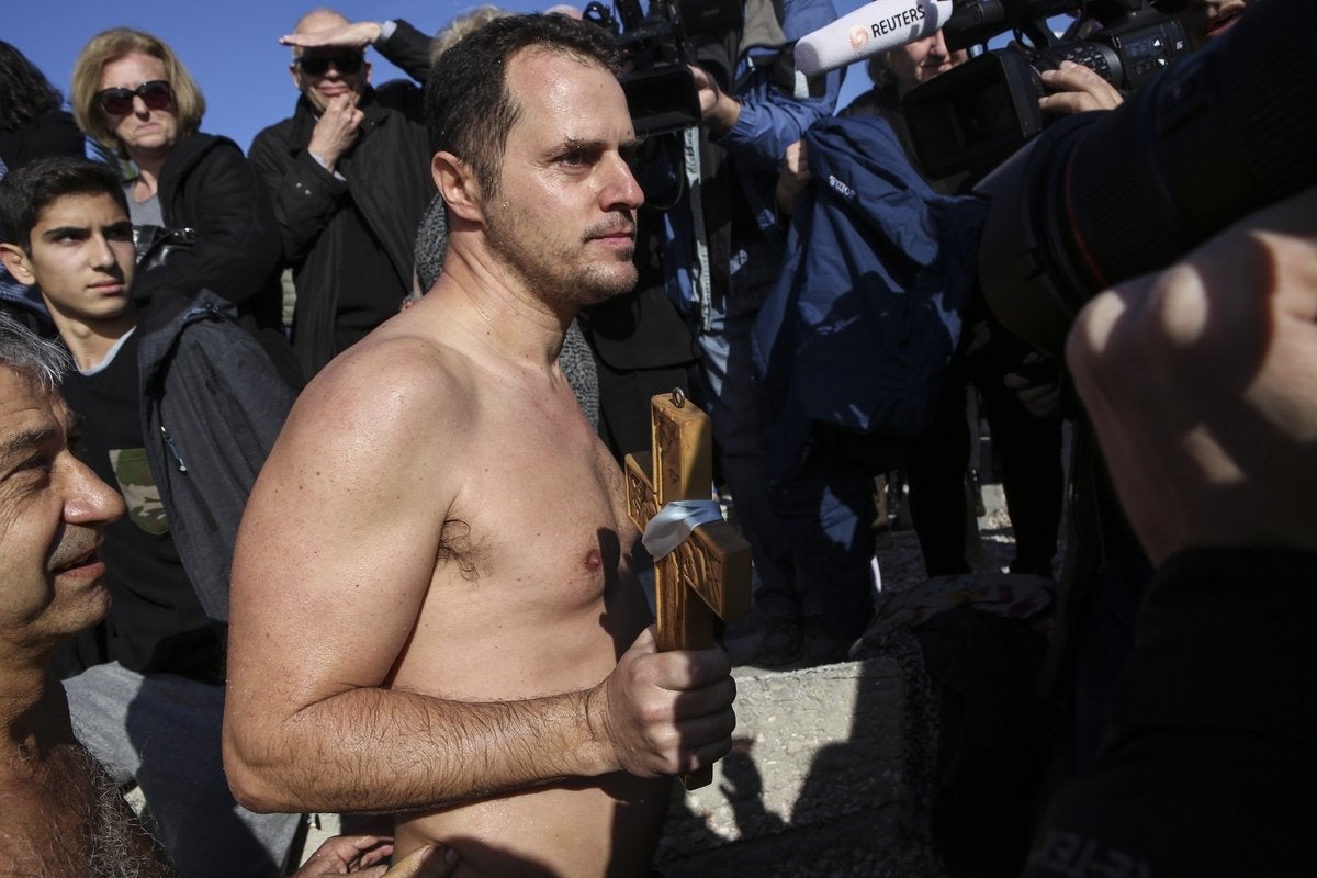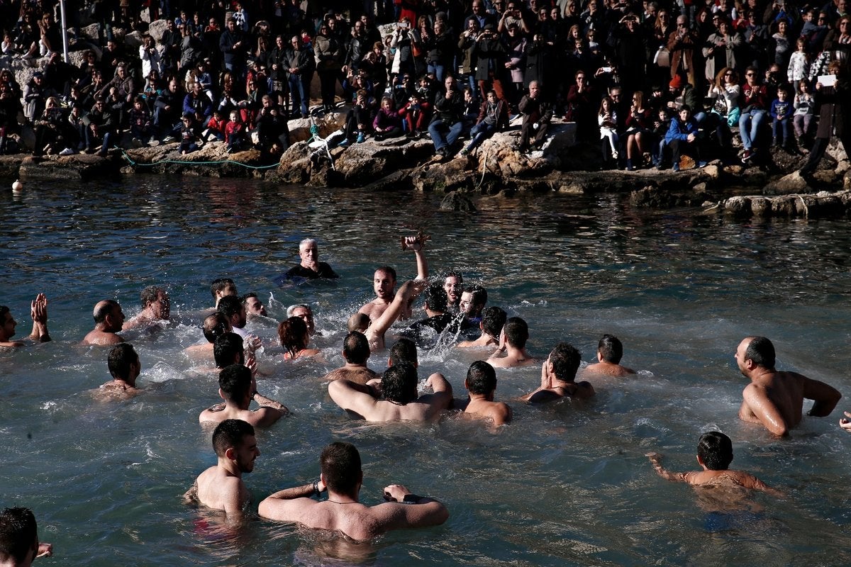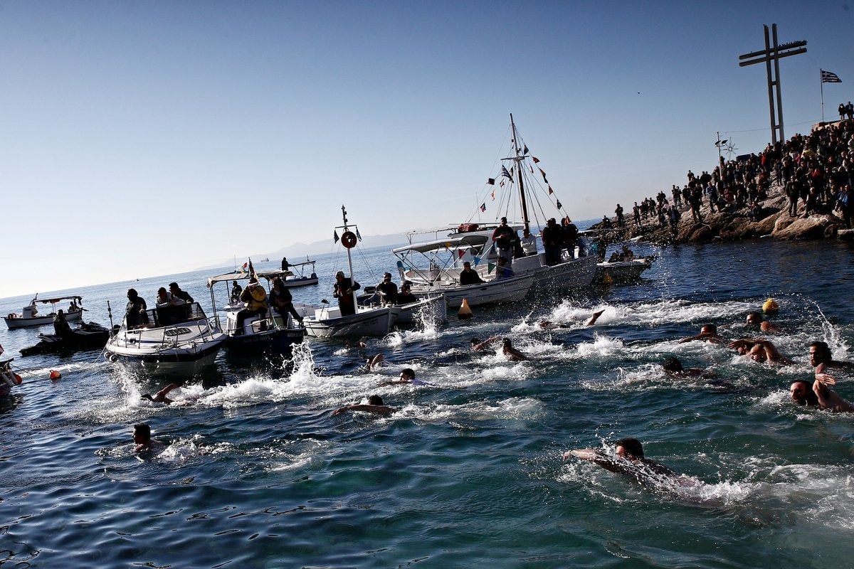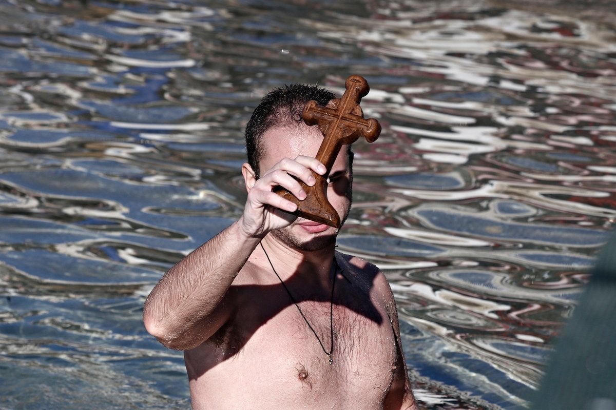 Δεκάδες και οι Πατρινοί που έπεσαν σήμερα στα νερά του βορείου λιμανιού της πόλης, για να πιάσουν τον Σταυρό, κατά την διάρκεια της τελετής του αγιασμού των υδάτων. Τελικά, τον Σταυρό κατάφερε να τον πιάσει ο 20χρονος Βασίλης Κοσμάς, ο οποίος τον παρέδωσε στον μητροπολίτη.Από την πλευρά του, ο μητροπολίτης έκανε δώρο στον νεαρό ένα σταυρό και όπως δήλωσε στην συνέχεια, «αν σταθούμε στην πίστη μας και στην ελληνορθόδοξη παράδοσή μας, τότε θα βγούμε από τις κρίσεις και θα προχωρήσουμε νικητές».