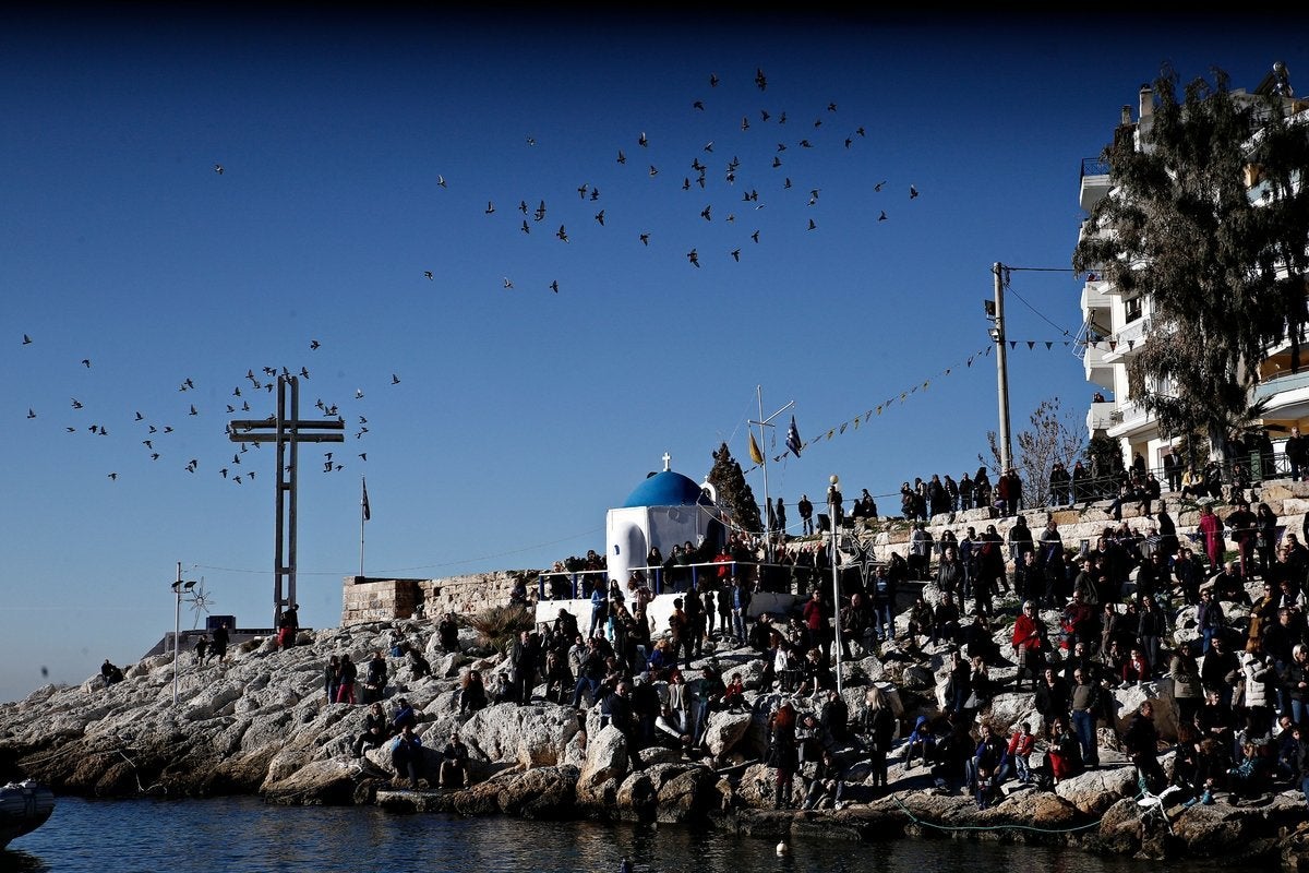 Με λαμπρότητα γιορτάστηκαν για μια ακόμη χρονιά τα Θεοφάνια που συνοδεύονται από τον Αγιασμό των Υδάτων και φυσικά το «πιάσιμο του Σταυρού».