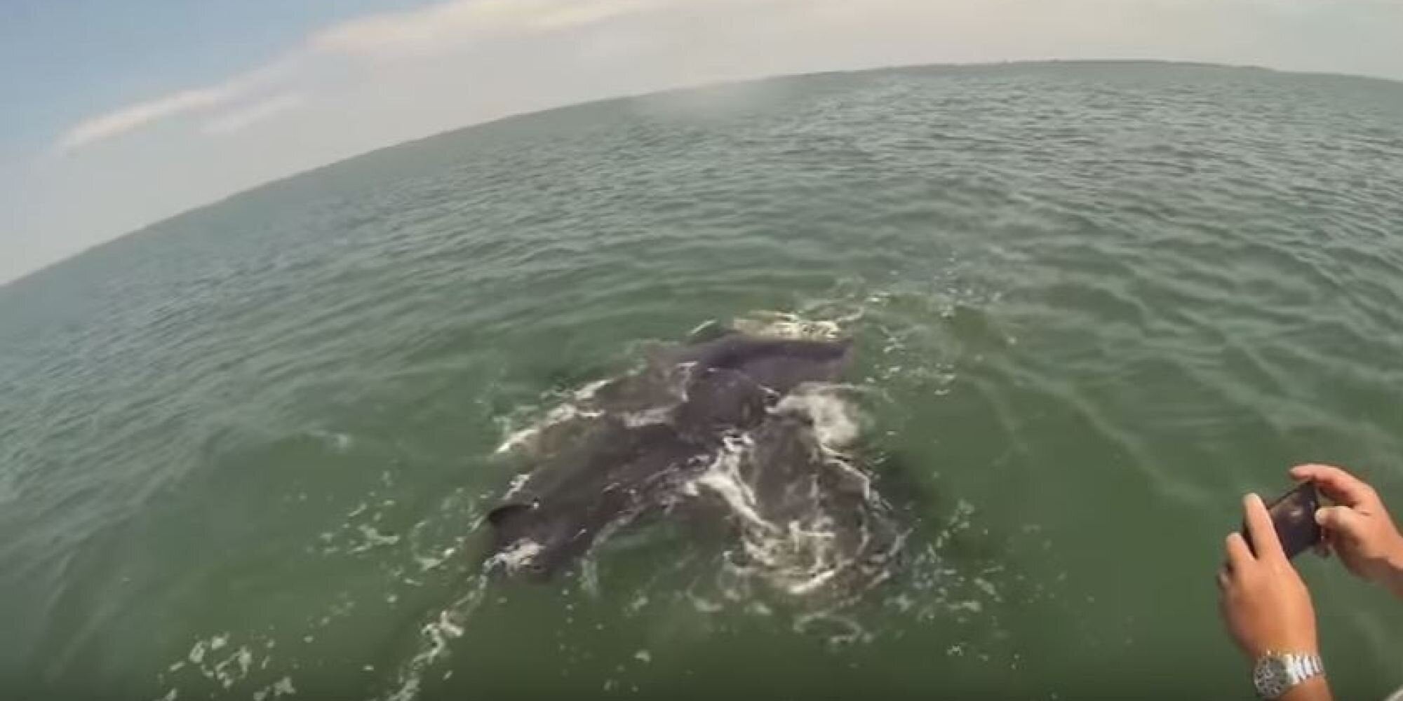 Χαρακτηριστική περίπτωση είναι η «επίσκεψη» ενός ιδιαίτερα μεγάλου εκπροσώπου του είδους σε ψαράδες που βρίσκονταν στα ανοιχτά του Χίλτον Χεντ, στη Νότια Καρολίνα των ΗΠΑ, η οποία κατεγράφη σε κάμερα. Σύμφωνα με τις εκτιμήσεις τους, το πλάτος του πλησίαζε τα πέντε (!) μέτρα.