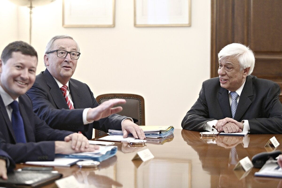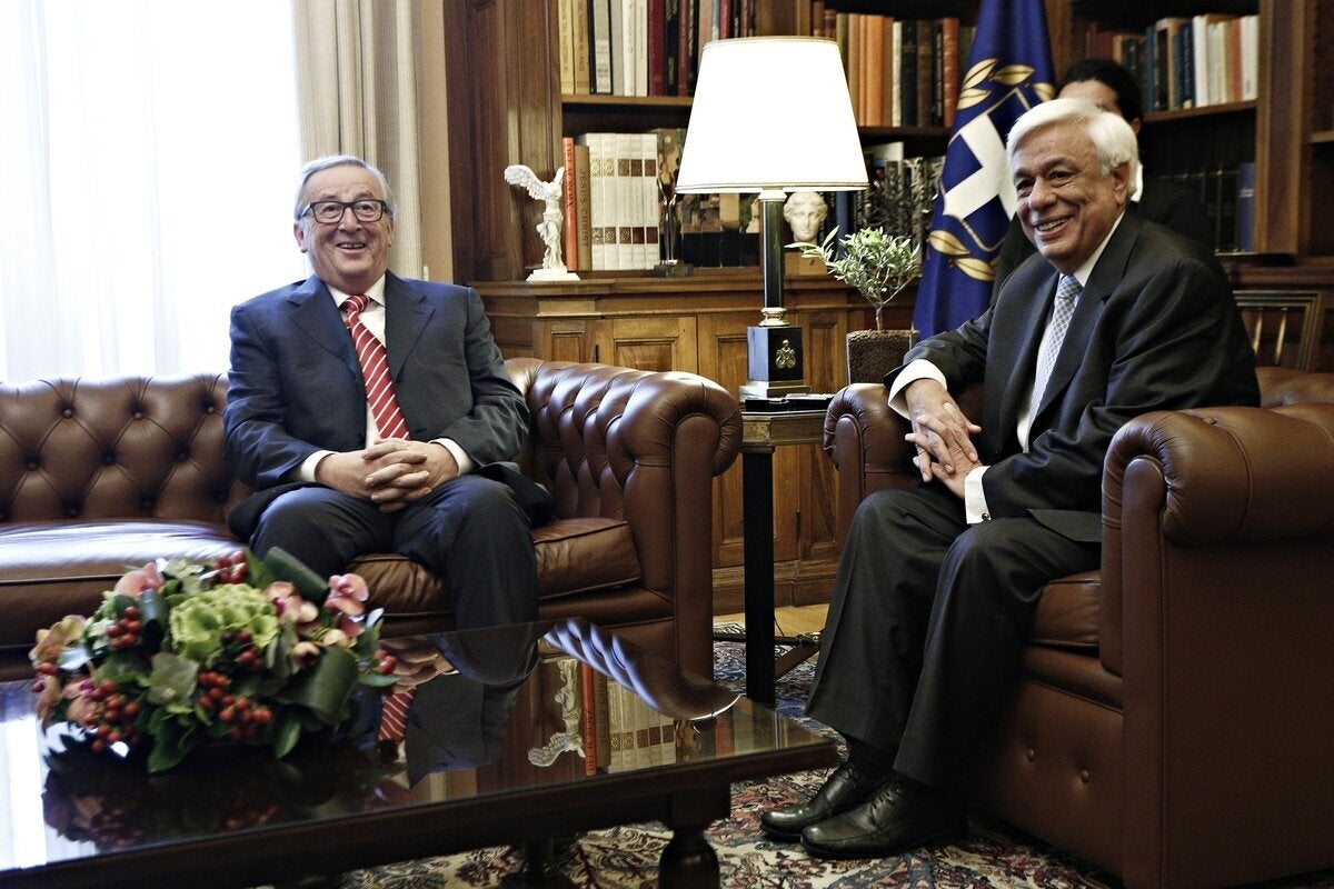 Ο κ. Παυλόπουλος καλωσόρισε από την πλευρά του τον κ. Γιούνκερ και έκανε λόγο για καθοριστική του συμβολή «για την παραμονή της Ελλάδας στην Ευρωπαϊκή Ένωση και την Ευρωζώνη». Επίσης ο Πρόεδρος της Δημοκρατίας τόνισε ακόμη πως η Ελλάδα, όπως φάνηκε άλλωστε και από την αξιολόγηση, έχει πράξει αυτό που της αναλογεί και θα το πράξει και στο μέλλον ώστε να βελτιωθεί το επενδυτικό κλίμα.