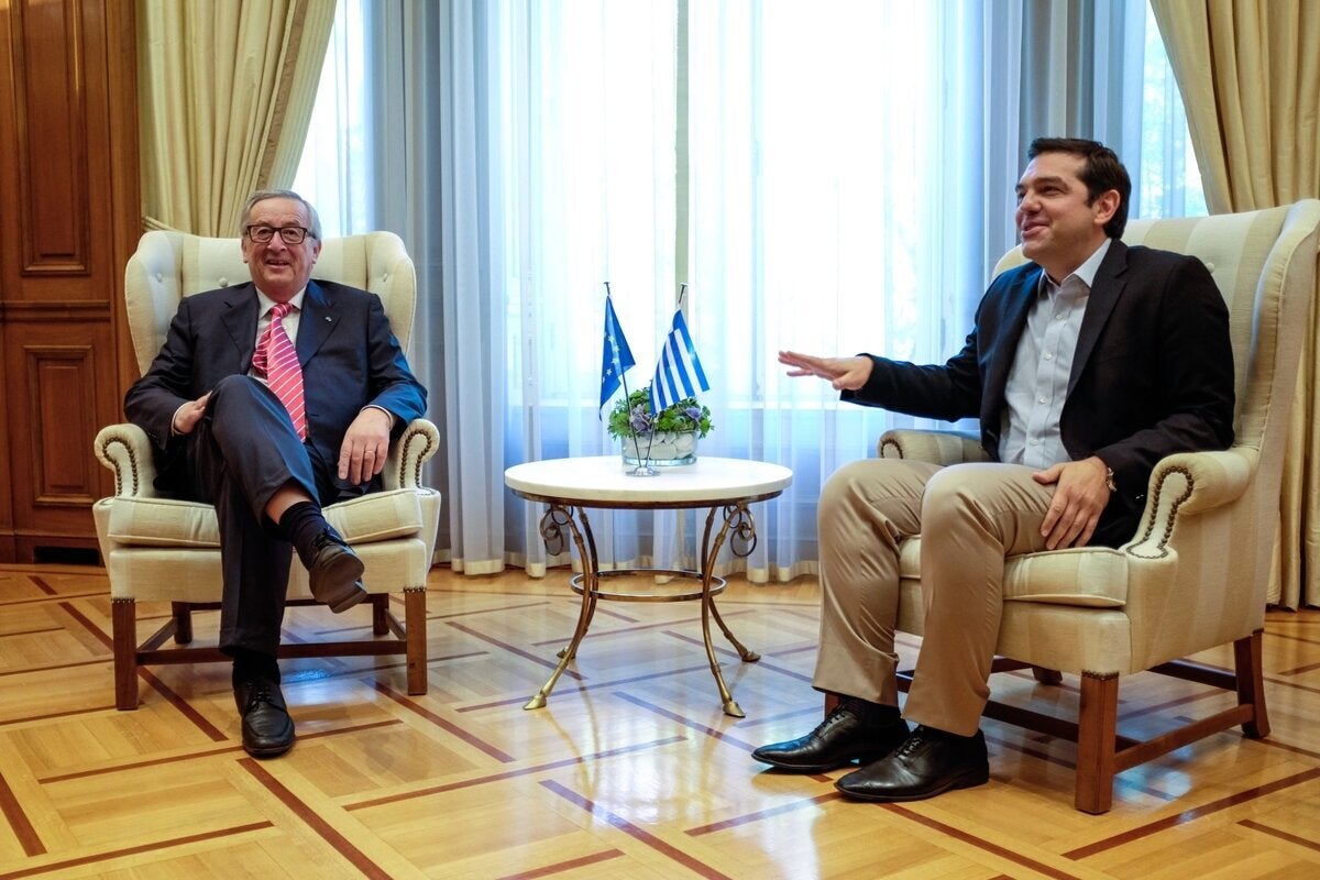 Σε αρκετά θερμό κλίμα πραγματοποιήθηκε η συνάντηση του προέδρου της Κομισιόν Ζαν Κλοντ Γιούνκερ με τον πρωθυπουργό Αλέξη Τσίπρα στο Μέγαρο Μαξίμου.