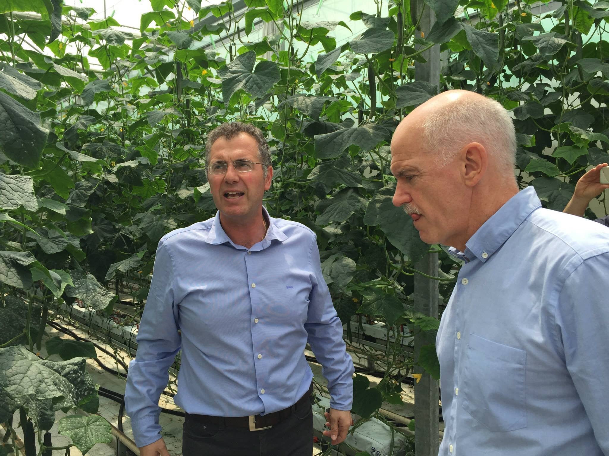 Σήμερα Σάββατο ο κ. Παπανδρέου επισκέφθηκε τα θερμοκήπια του γεωθερμικού πεδίου Ερασμίου όπου αξιοποιείται το γεωθερμικό δυναμικό της περιοχής.