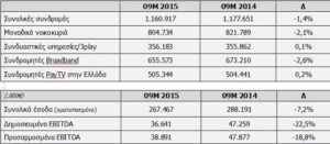 «Παρά την περαιτέρω συρρίκνωση της ελληνικής οικονομίας και τη μείωση της αγοραστικής δαπάνης κατά το εννεάμηνο του 2015, που μας οδήγησε στη διατήρηση συντηρητικής εμπορικής πολιτικής, η συνολική συνδρομητική μας βάση παρέμεινε σταθερή. Όντας μία καινοτόμα εταιρεία με μοναδική τεχνογνωσία στους τομείς της συνδρομητικής τηλεόρασης και των τηλεπικοινωνιών,