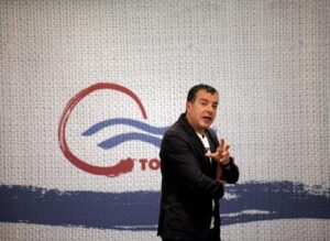 Ο Σταύρος Θεοδωράκης στην πρώτη επίσημη παρουσίαση του ποταμιού στις 4 Μαρτίου 2014 (Sooc)