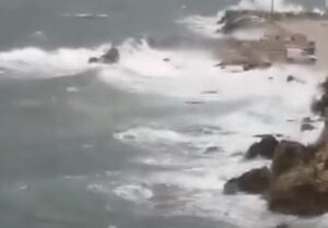 Περισσότερο πλήττονται οι περιοχές Πίσω Λιβάδι και Λογαράς, με τα κύματα να φτάνουν σε αρκετά μέτρα στη στεριά.