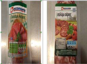 α) «Economy – Σαλάμι αέρος, τ. Θάσου», βάρος: 120 g σε φέτες, αριθ. Παρτίδας: L 02196, ημ. ανάλωσης έως: 10.01.2021.