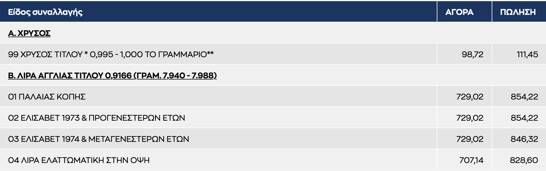 Η τιμή της λίρας τον Σεπτέμβριο (26/09/2025, πηγή: ΤτΕ)