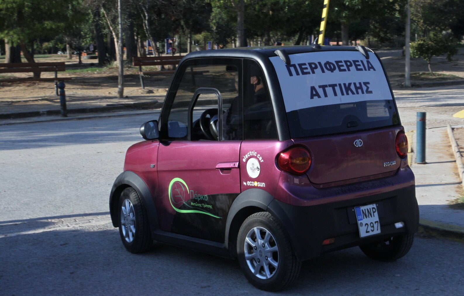 Το eco car είναι ένα έξυπνο ηλεκτρικό αυτοκίνητο, με δυνατότητα χρήσης εντός του αστικού δημόσιου χώρου είτε αυτός αφορά το οδικό δίκτυο είτε το οριοθετημένο χώρο του Μητροπολιτικού Πάρκου. Διαθέτει εξοπλισμό της πιο σύγχρονης τεχνολογίας -GPS, USB, SD CARD, MP5.