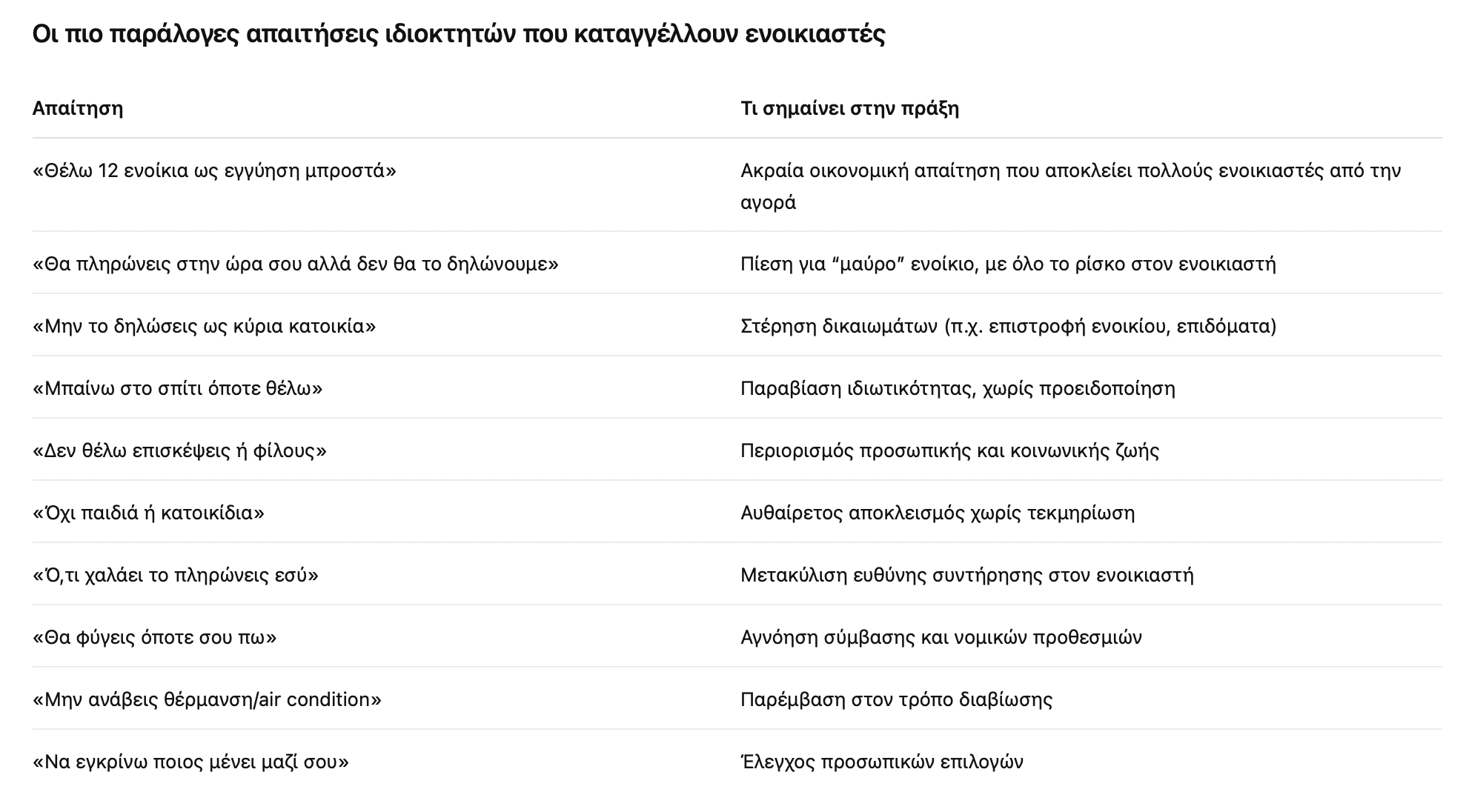 Με άλλα λόγια, ναι η νέα ρύθμιση επιχειρεί να λύσει ένα υπαρκτό πρόβλημα της αγοράς, τις μεγάλες καθυστερήσεις και τις περιπτώσεις στρατηγικών κακοπληρωτών. Από την άλλη, όμως, δημιουργεί πολύ μεγάλη πίεση σε όσους πραγματικά δυσκολεύονται. Έτσι, σε μια αγορά κατοικίας που γίνεται ολοένα και πιο ακριβή, η ασφάλεια της στέγης δεν θεωρείται πλέον δεδομένη για κανέναν ενοικιαστή…