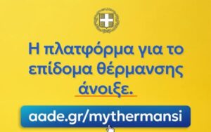 Οι ενδιαφερόμενοι υποβάλλουν τις αιτήσεις τους, ηλεκτρονικά, μέσω της πλατφόρμας myΘέρμανση στην ψηφιακή πύλη myAADE (myaade.gov.gr).