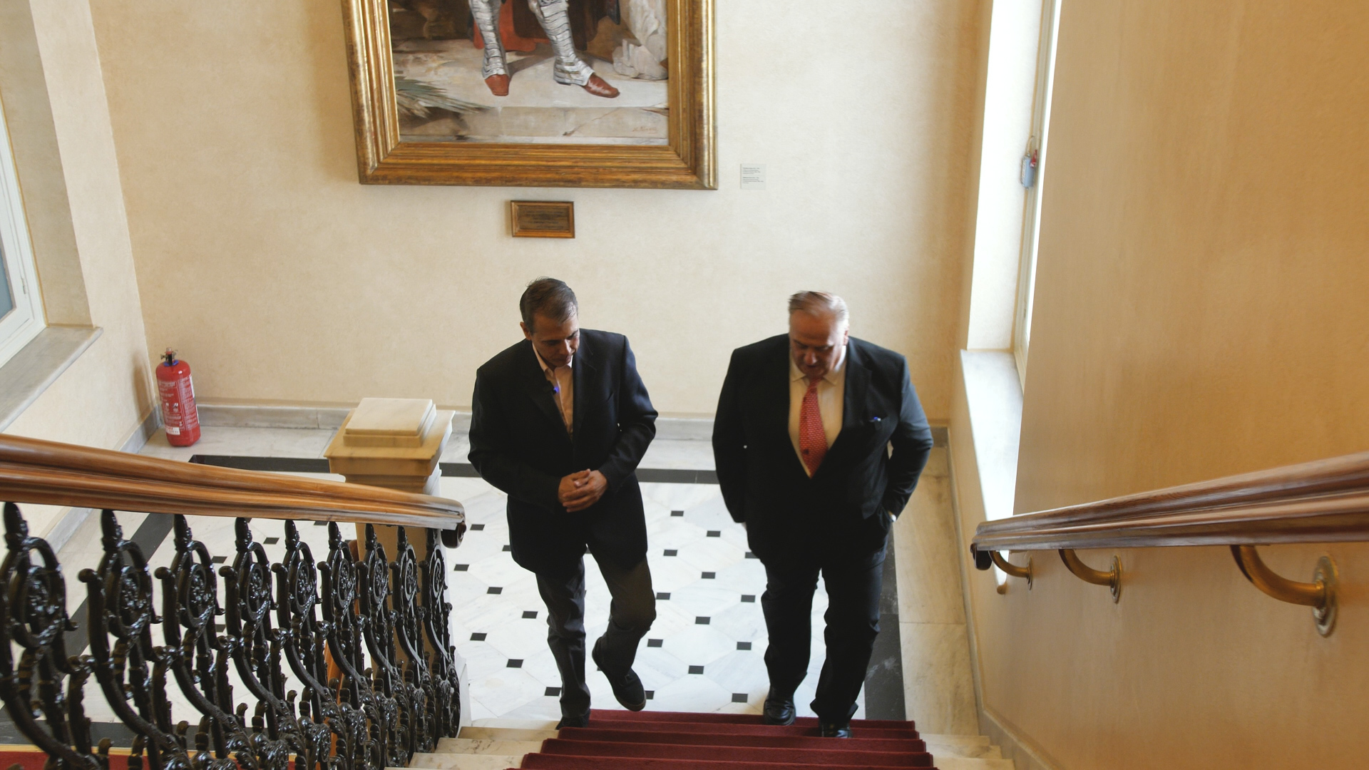 Καθώς ολοκληρώναμε το πρώτο μέρος της συζήτησης, ο ήλιος έμπαινε από τα μεγάλα παράθυρα του ιστορικού κτιρίου και φώτιζε τις παλιές κορνίζες στους τοίχους. Η «παλιά» Εθνική συνομιλούσε με τη «νέα» Εθνική, μέσα από τα λόγια ενός ανθρώπου που πιστεύει πως ο εκσυγχρονισμός μπορεί να συνυπάρξει με το ήθος και τη συνέχεια.