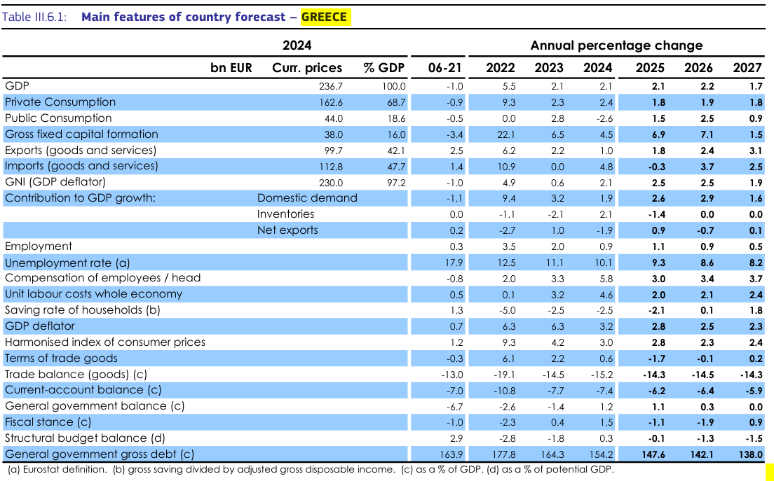 «Στο πρώτο εξάμηνο του 2025, η ελληνική οικονομία αναπτύχθηκε κατά 2% σε ετήσια βάση, κυρίως χάρη στην ιδιωτική κατανάλωση και τον τουρισμό. Οι επενδύσεις ενισχύθηκαν το δεύτερο τρίμηνο, ιδίως στις κατασκευές και τον εξοπλισμό.