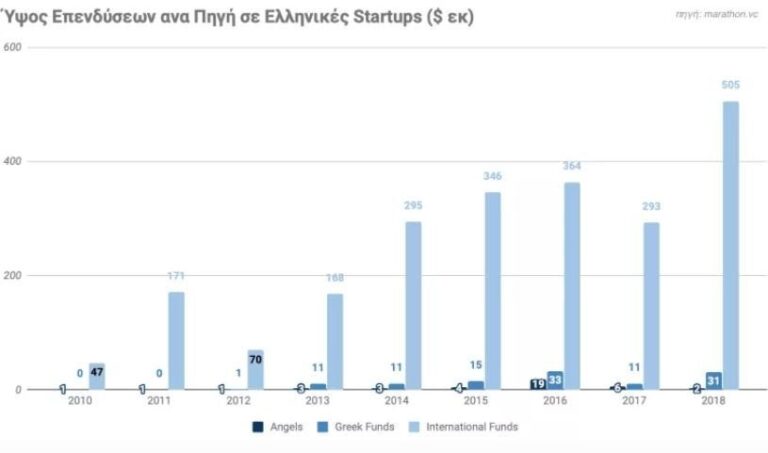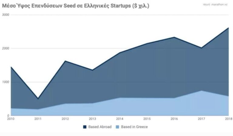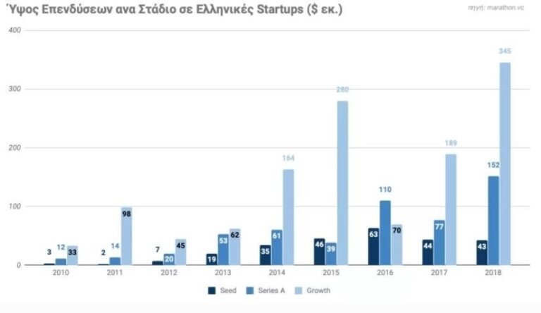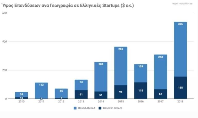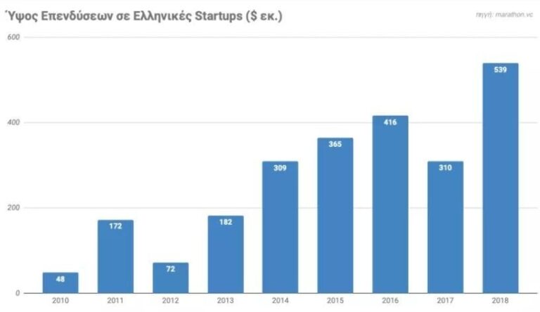 Το συνολικό ποσό που επενδύθηκε σε ελληνικές startups μεγάλωσε 11 φορές μεταξύ 2010 και 2018, από 48 σε 540 εκατομμύρια δολάρια.