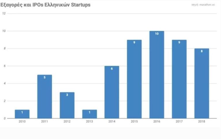 Μεταξύ 2010 και 2018, 47 ελληνικές startups εξαγοράστηκαν και 5 πραγματοποίησαν IPO (αρχική δημόσια εγγραφή σε χρηματιστήριο). Ο αριθμός των εξαγορών αυξήθηκε από μηδέν το 2010 σε δέκα το 2016 και οκτώ το 2018, ενώ έχουν ήδη πραγματοποιηθεί δύο σημαντικές εξαγορές το 2019.