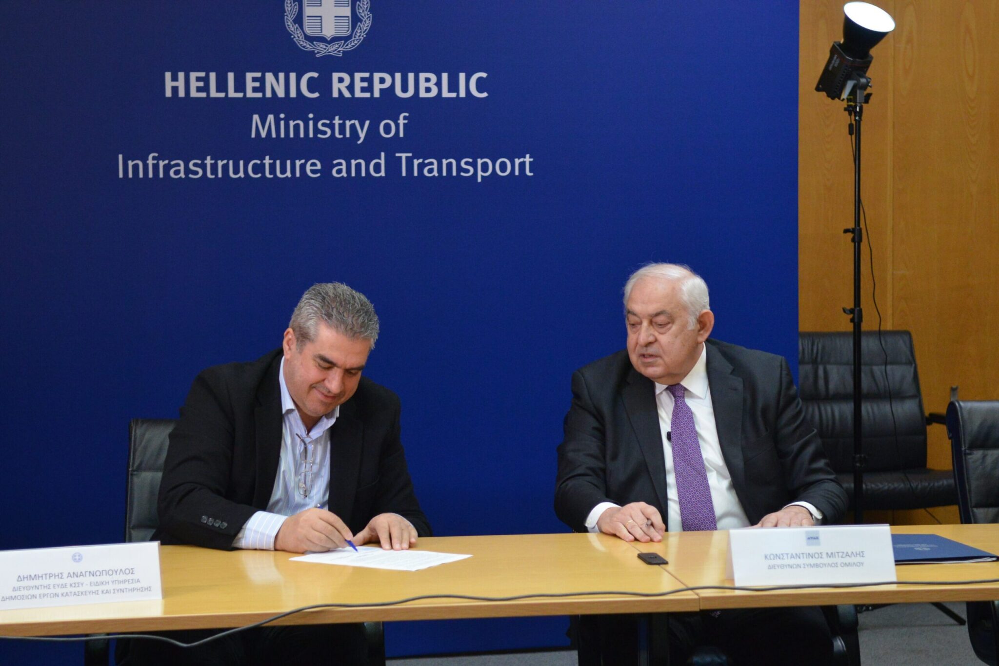 Τη σύμβαση υπέγραψαν εκ μέρους του Υπουργείου Υποδομών και Μεταφορών ο διευθυντής της Ειδικής Υπηρεσίας Δημοσίων Έργων Κατασκευής και Συντήρησης, Δημήτρης Αναγνώπουλος και εκ μέρους της αναδόχου εταιρείας ΑΒΑΞ, ο διευθύνων σύμβουλος, Κωνσταντίνος Μιτζάλης.