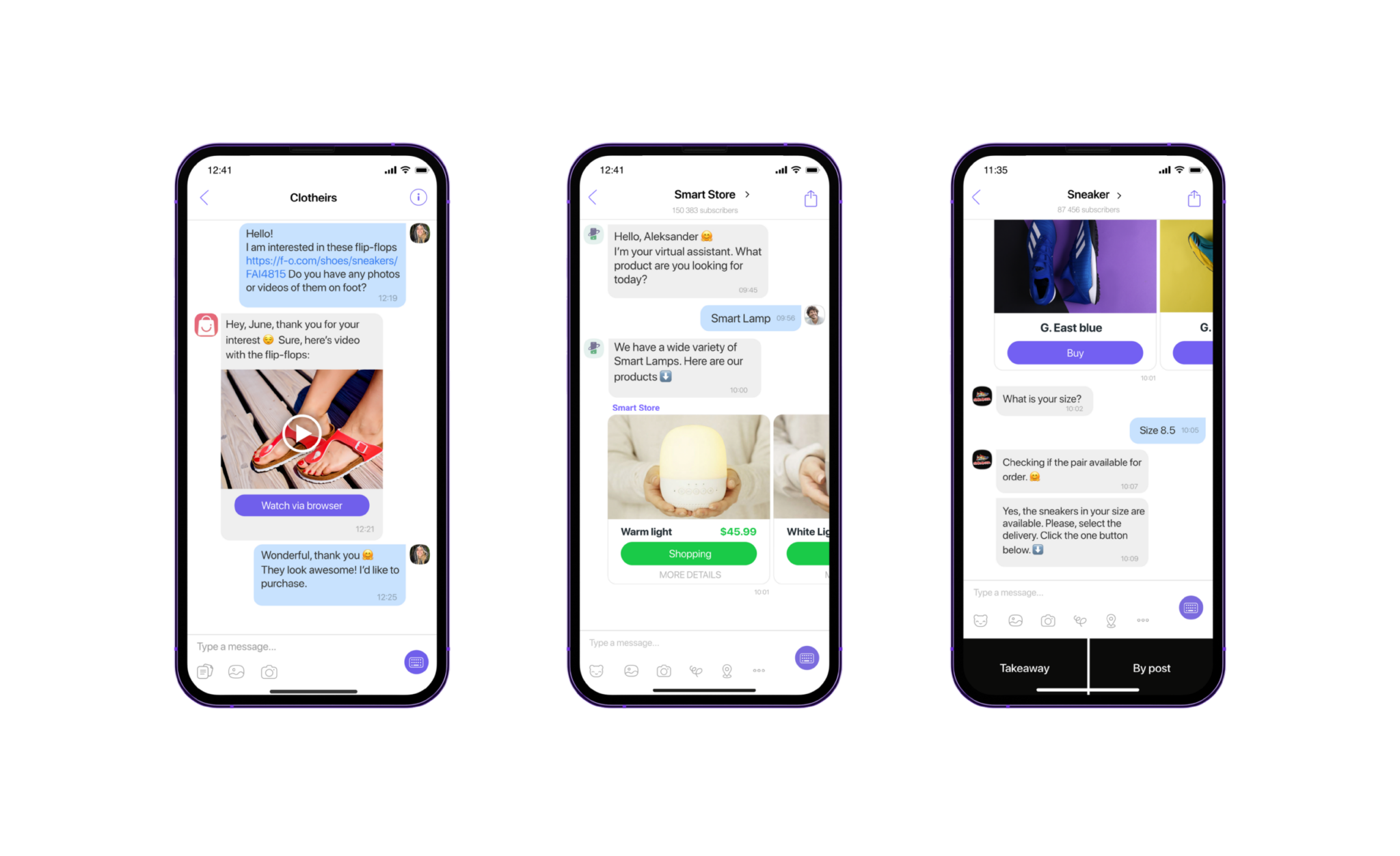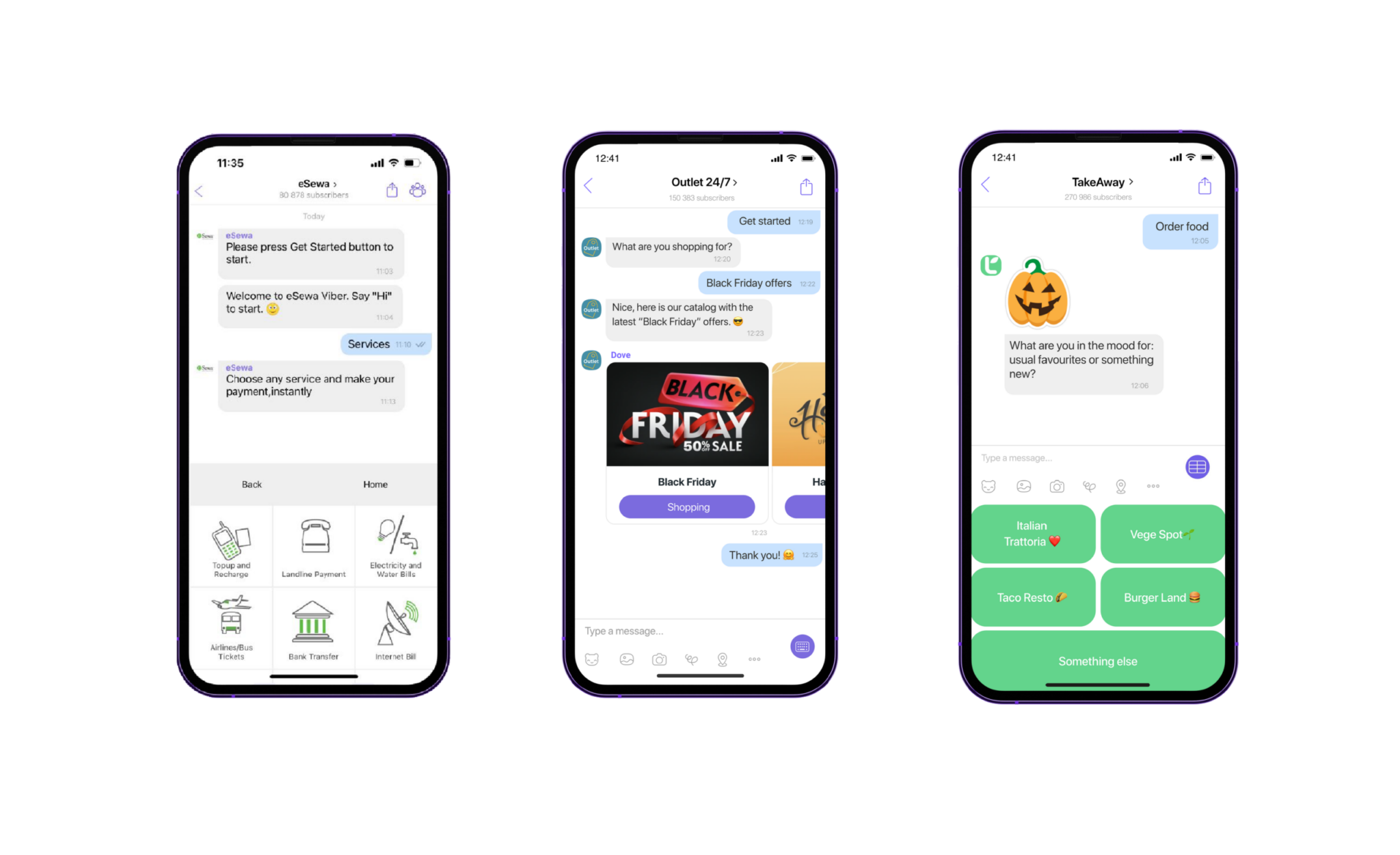 Για παράδειγμα, το Viber διαθέτει ένα ευρύ φάσμα λειτουργιών που μπορούν να χρησιμοποιήσουν οι επιχειρήσεις για να δημιουργήσουν μηνύματα συνομιλίας, τα οποία ενεργοποιούνται μέσω αυτοματοποιημένων ειδοποιήσεων, chatbots ή πραγματικών υπαλλήλων.