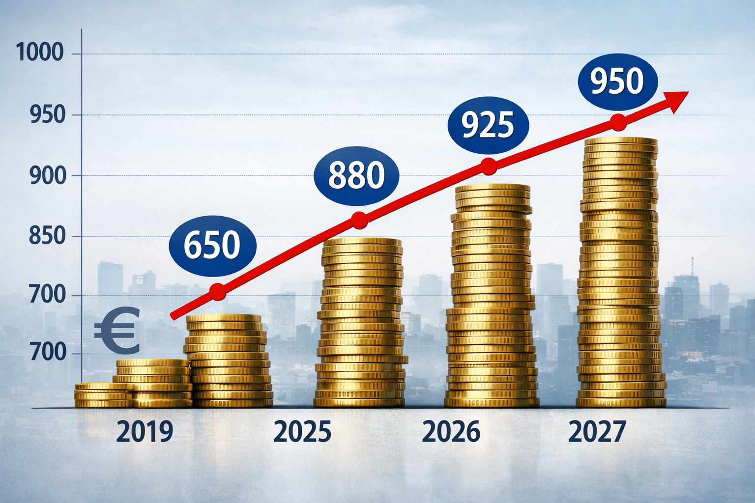 Από το 2019 έως σήμερα ο κατώτατος μισθός έχει αυξηθεί σημαντικά σε ονομαστικούς όρους, χωρίς όμως να ακολουθεί με τον ίδιο ρυθμό την άνοδο του κόστους ζωής. Από τα 650 ευρώ το 2019, σήμερα βρίσκεται στα 880 ευρώ, ενώ τον Απρίλιο του 2026 αναμένεται να αυξηθεί στα επίπεδα των 920–930 ευρώ. Σύμφωνα με τον σχεδιασμό, στο τέλος του 2027 ο κατώτατος μισθός θα φτάσει τα 950 ευρώ, αποτυπώνοντας μια σταδιακή αλλά συγκρατημένη πορεία ενίσχυσης του εισοδήματος των χαμηλόμισθων.
