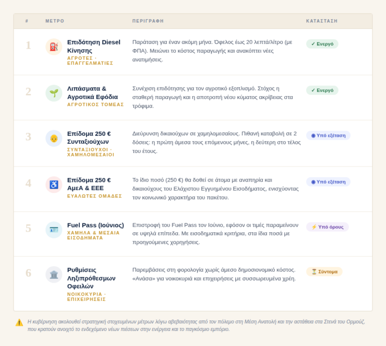 Η κυβέρνηση κινείται προσεκτικά. Ο πόλεμος στη Μέση Ανατολή και η αστάθεια στα Στενά του Ορμούζ κρατούν ανοιχτό το ενδεχόμενο νέων πιέσεων στην ενέργεια και στο παγκόσμιο εμπόριο. Για αυτό και η στρατηγική που επιλέγεται από το Μαξίμου είναι στοχευμένα μέτρα και όχι γενικευμένες παροχές.