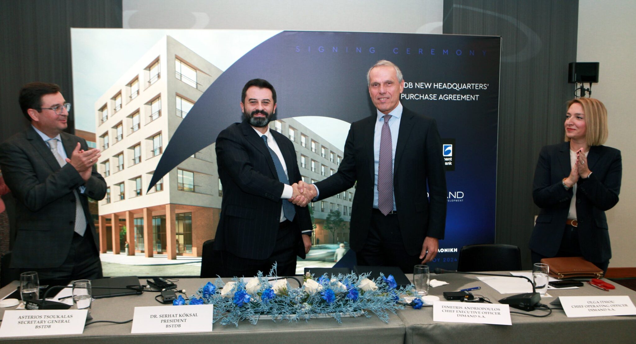 Τώρα, λίγο καιρό μετά, ήρθε η υπογραφή συμφωνίας για τη μεταβίβαση και ανάπτυξη του ακινήτου που θα στεγάσει τα νέα γραφεία της Τράπεζας Εμπορίου και Ανάπτυξης Ευξείνου Πόντου (ΤΕΑΕΠ ή Παρευξείνια Τράπεζα, Black Sea Trade and Development Bank – BSTDB). Η συμφωνία που υπεγράφη από τον Δημήτρη Ανδριόπουλο, διευθύνοντα σύμβουλο της Dimand Α.Ε., και τον Δρ. Σερχάτ Κιοκσάλ, πρόεδρο της Παρευξείνιας Τράπεζας, αφορά στην εξαγορά ακινήτου από την Τράπεζα και εν συνεχεία στο σχεδιασμό και την ανάπτυξη των νέων γραφείων της από την DIMAND A.E. Το σχετικό τίμημα ανέρχεται σε 16 εκατομμύρια ευρώ, ποσό που θα χρηματοδοτηθεί μέσω μιας συνεργασίας μεταξύ της Ελληνικής Κυβέρνησης και της ΤΕΑΕΠ.