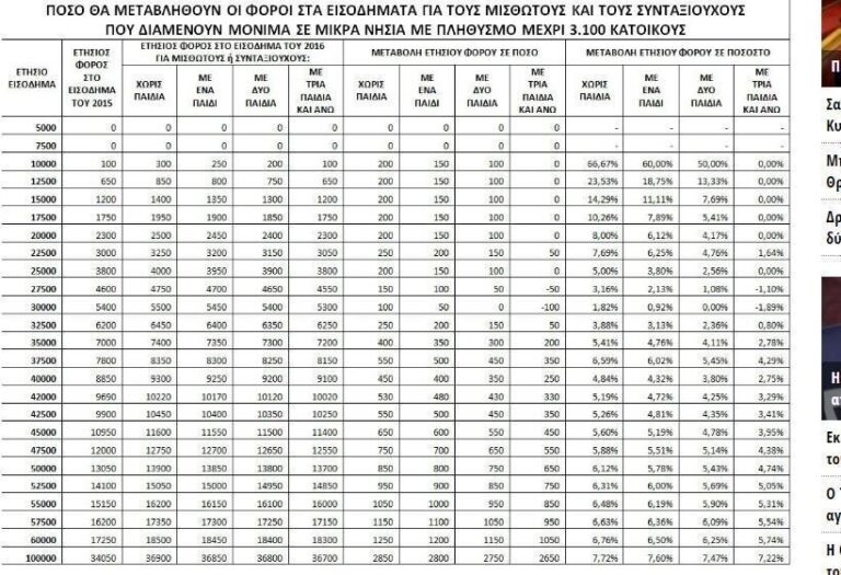Ο συνδυασμός αυτός θα έχει ως συνέπεια οι περισσότεροι μισθωτοί και συνταξιούχοι που είναι κάτοικοι των μικρών αυτών νησιών να κληθούν να καταβάλουν σημαντικά αυξημένους φόρους για τα εισοδήματα του 2016. Το πόσο θα αυξηθούν οι φόροι στους μισθούς και τις συντάξεις των κατοίκων των 73 μικρών νησιών αποτυπώνεται καλύτερα στον σχετικό πίνακα που δημοσιεύουν τα dikaiologitika.gr.