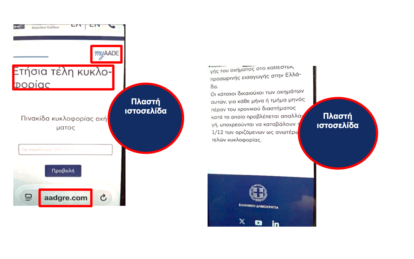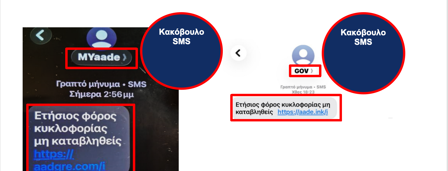 Τα επίμαχα μηνύματα εμφανίζονται με αποστολέα ονόματα όπως «MYaade» ή «GOV» και αναφέρουν ότι δήθεν δεν έχει καταβληθεί ο ετήσιος φόρος ή τα τέλη κυκλοφορίας. Με αυτό το πρόσχημα, καλούν τον παραλήπτη να πατήσει σε έναν σύνδεσμο (link) για να προχωρήσει σε «άμεση πληρωμή».