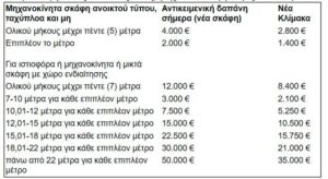 Για τα σκάφη σήμερα η τεκμαρτή δαπάνη από κάθε σκάφος μειώνεται ανάλογα με την παλαιότητά του κατά 15% αν έχουν παρέλθει πάνω από 5 έτη από το έτος που νηολογήθηκε για πρώτη φορά, ή και 30% αν έχουν παρέλθει 10 έτη. Με το νέο καθεστώς, μειώνεται κατά 30% η τεκμαρτή δαπάνη και για τα νεότερα σκάφη, καθώς οι δαπάνες συντήρησης δεν είναι υψηλότερες στα νεότερα