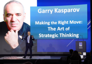 Φέτος επέλεξε να παίξει… σκάκι, εκεί όπου η κάθε κίνηση μετρά πολύ στο τελικό αποτέλεσμα. Κι αυτό το γνωρίζει καλύτερα από όλους ο Γκάρι Κασπάροφ, ο Ρώσος παγκόσμιος πρωταθλητής ο οποίος ήταν καλεσμένος στο συνέδριο, προκειμένου να μεταφέρει τις δικές του γνώσεις και εμπειρίες στην αποτελεσματικότητα των κινήσεων.