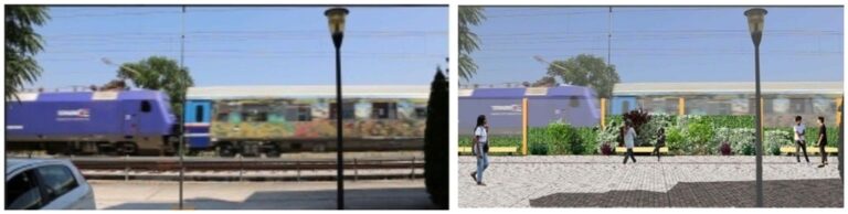 Στα σημεία όπου από τη μελέτη θορύβου που εκπονήθηκε και εγκρίθηκε (ΥΠΕΝ – ΟΣΕ) δεν προκύπτει απαίτηση τοποθέτησης ηχοπετάσματος, προβλέπεται η κατασκευή περίφραξης.